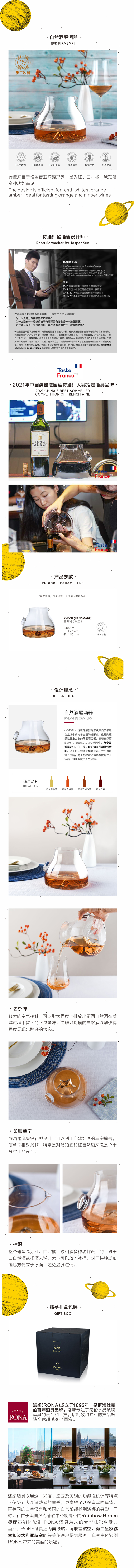 RONA/洛娜 侍酒师Jasper设计基弗利(手工)自然酒醒酒器水晶1400ml