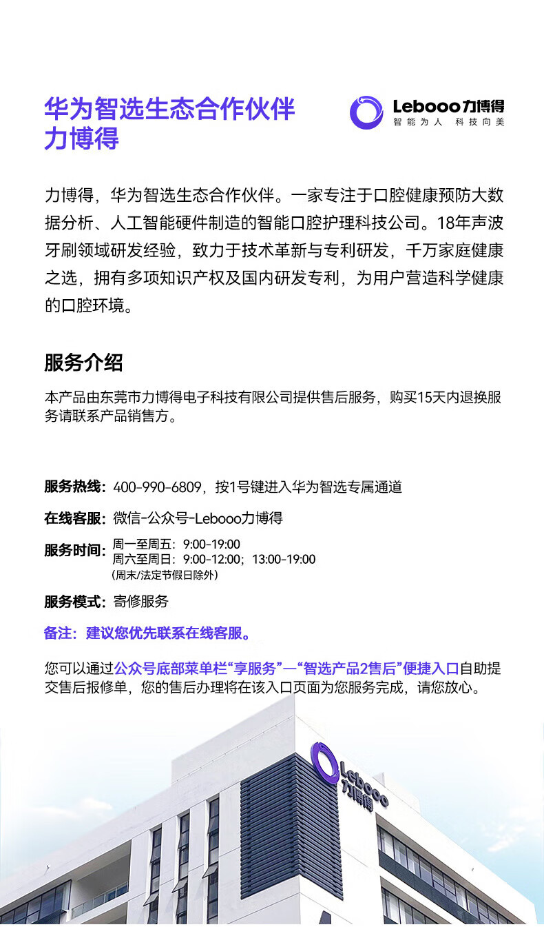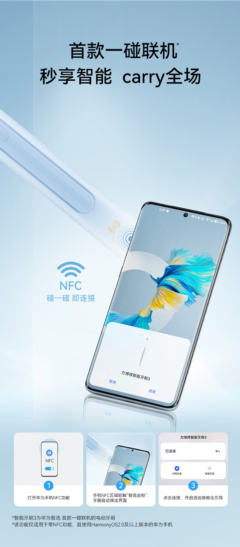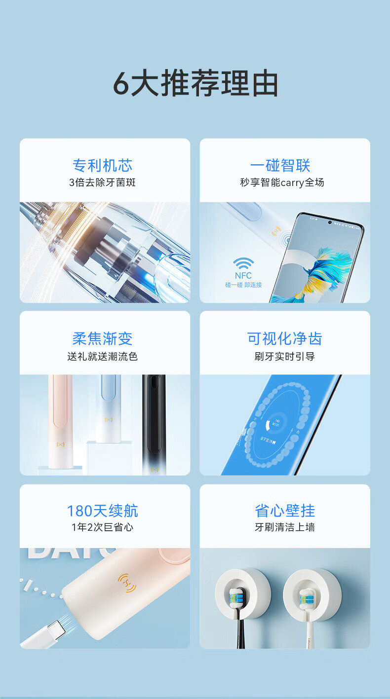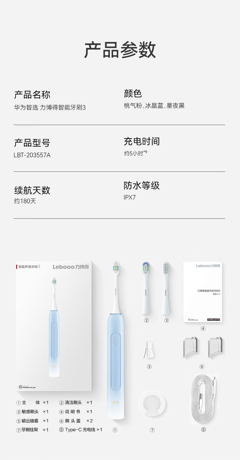 华为智选 力博得电动牙刷 智能声波牙刷 优漾3 清洁不打牙