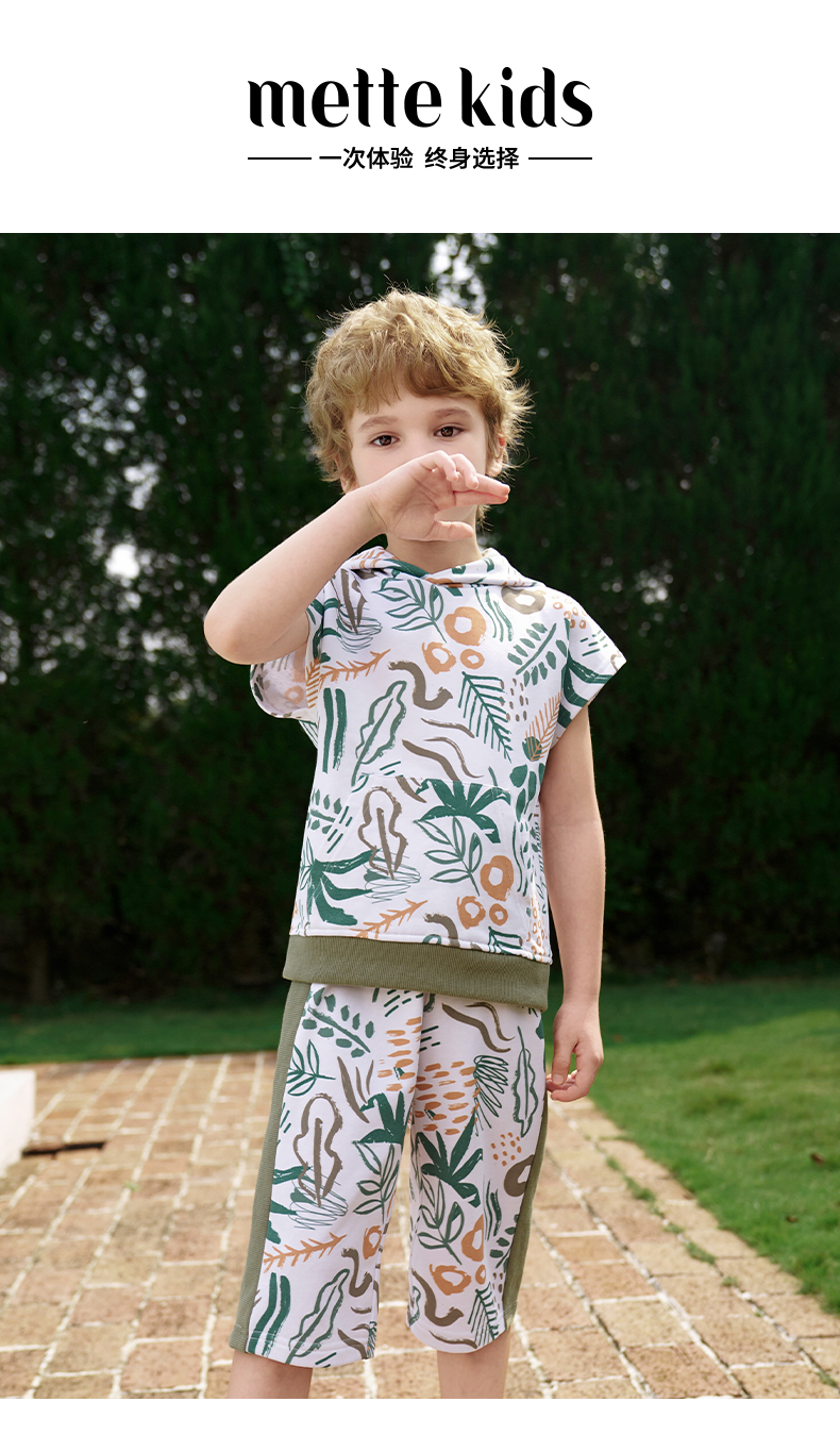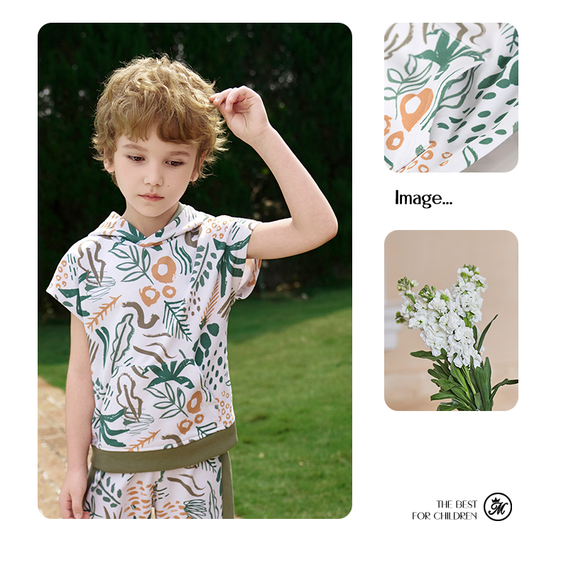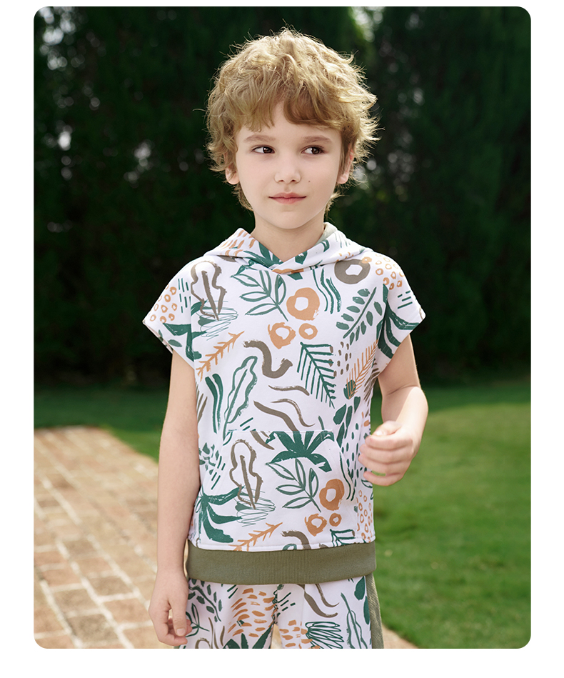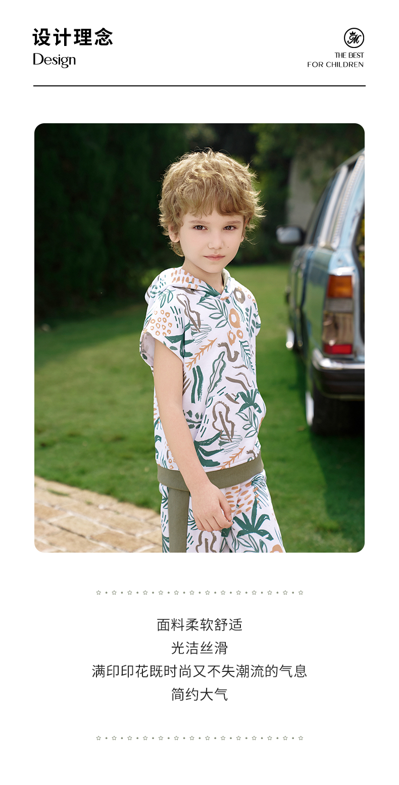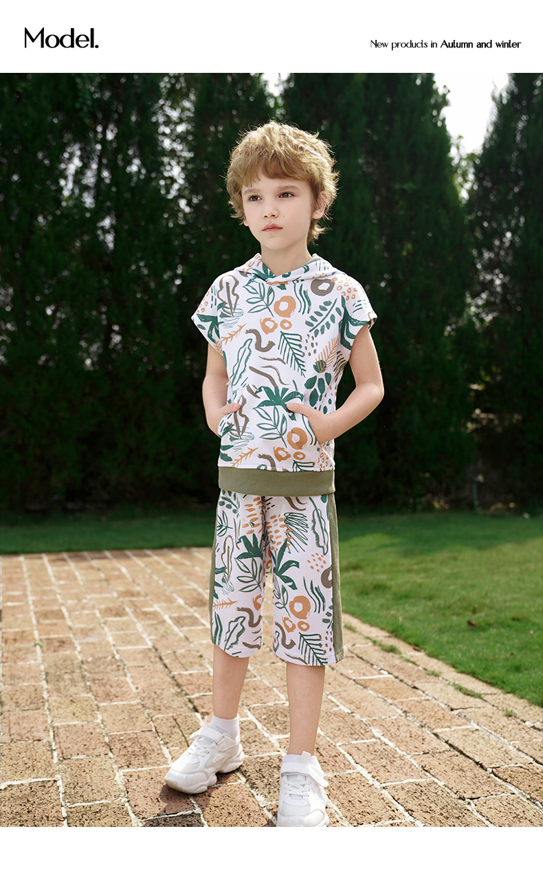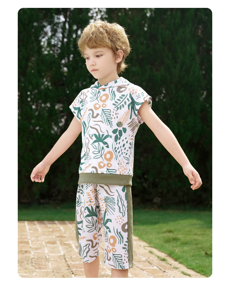儿童套装2024夏季新款潮帅气印花短袖短裤卫衣男童休闲运动童装