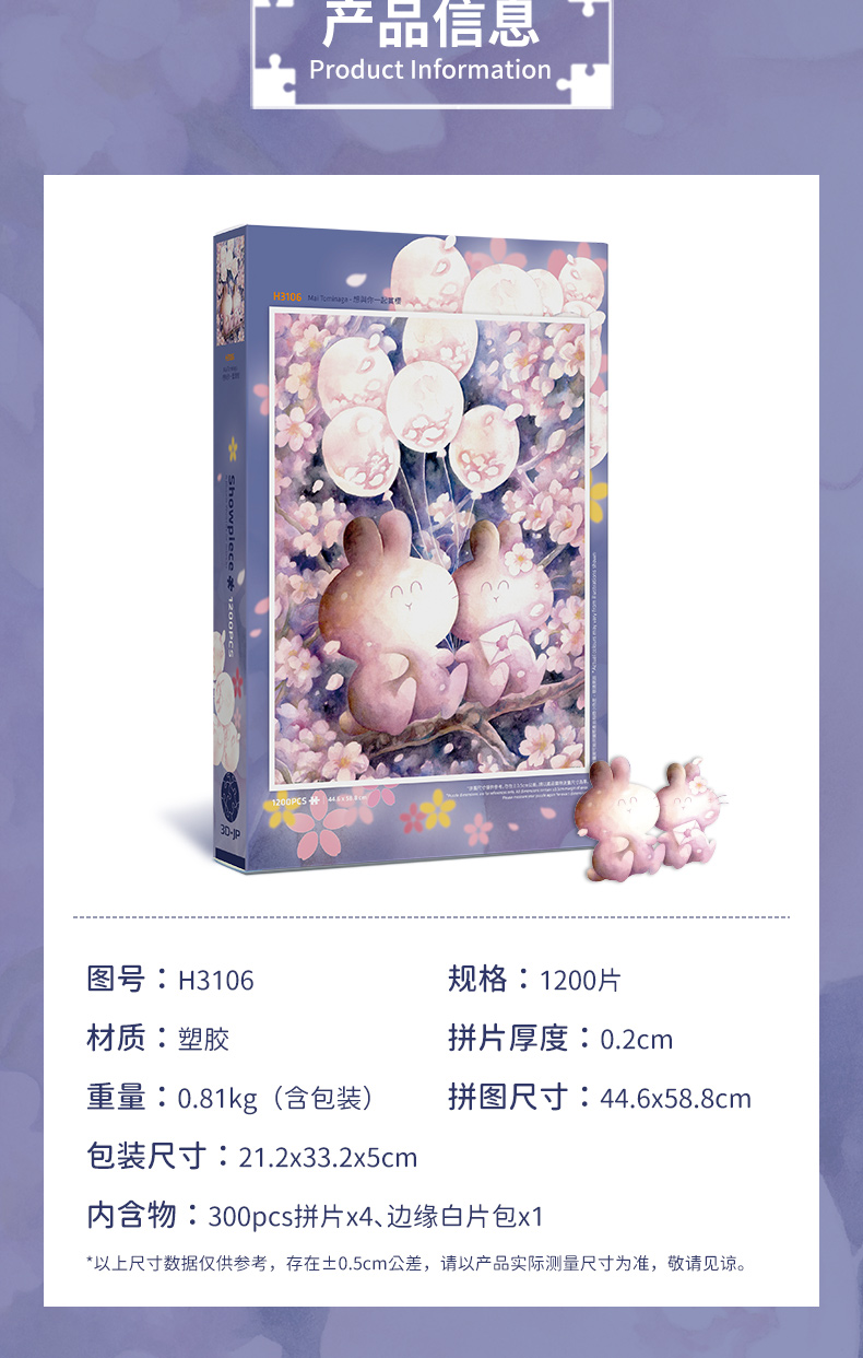 【折扣商品 不退不换】1200片平面拼图 H3106 Mai Tominaga-想与你一起赏樱 折扣商品 轻微盒损 介意慎拍