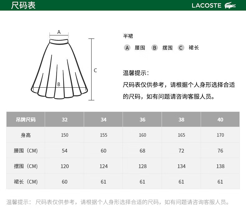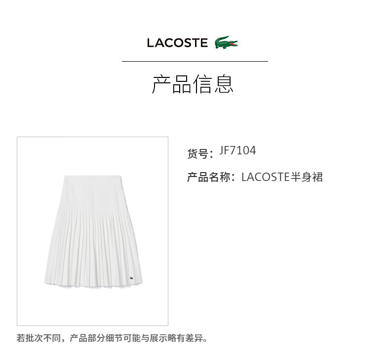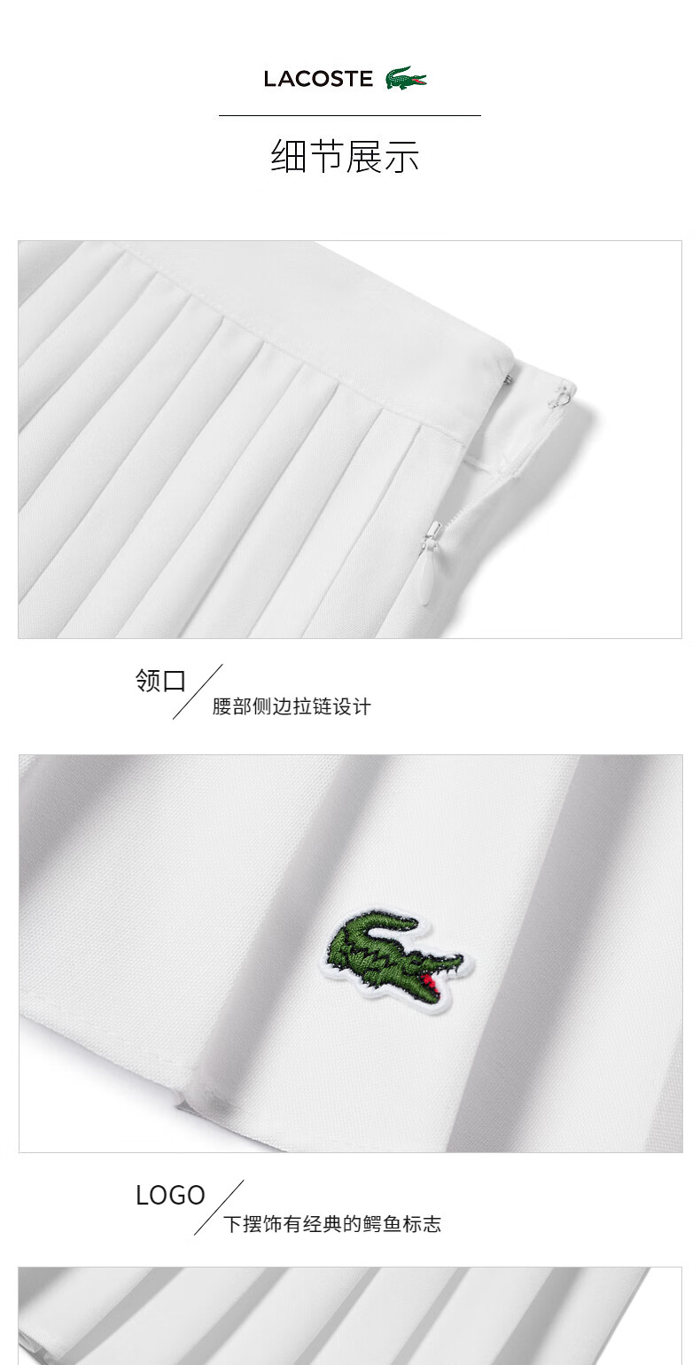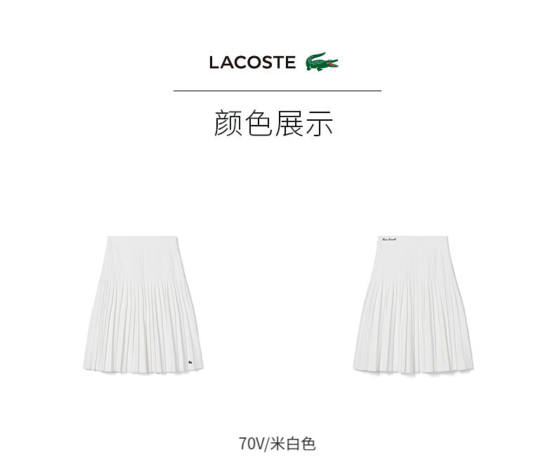 【海南专供价】Lacoste法国鳄鱼女装新款纯色通勤百褶半身裙裙子JF7104-10
