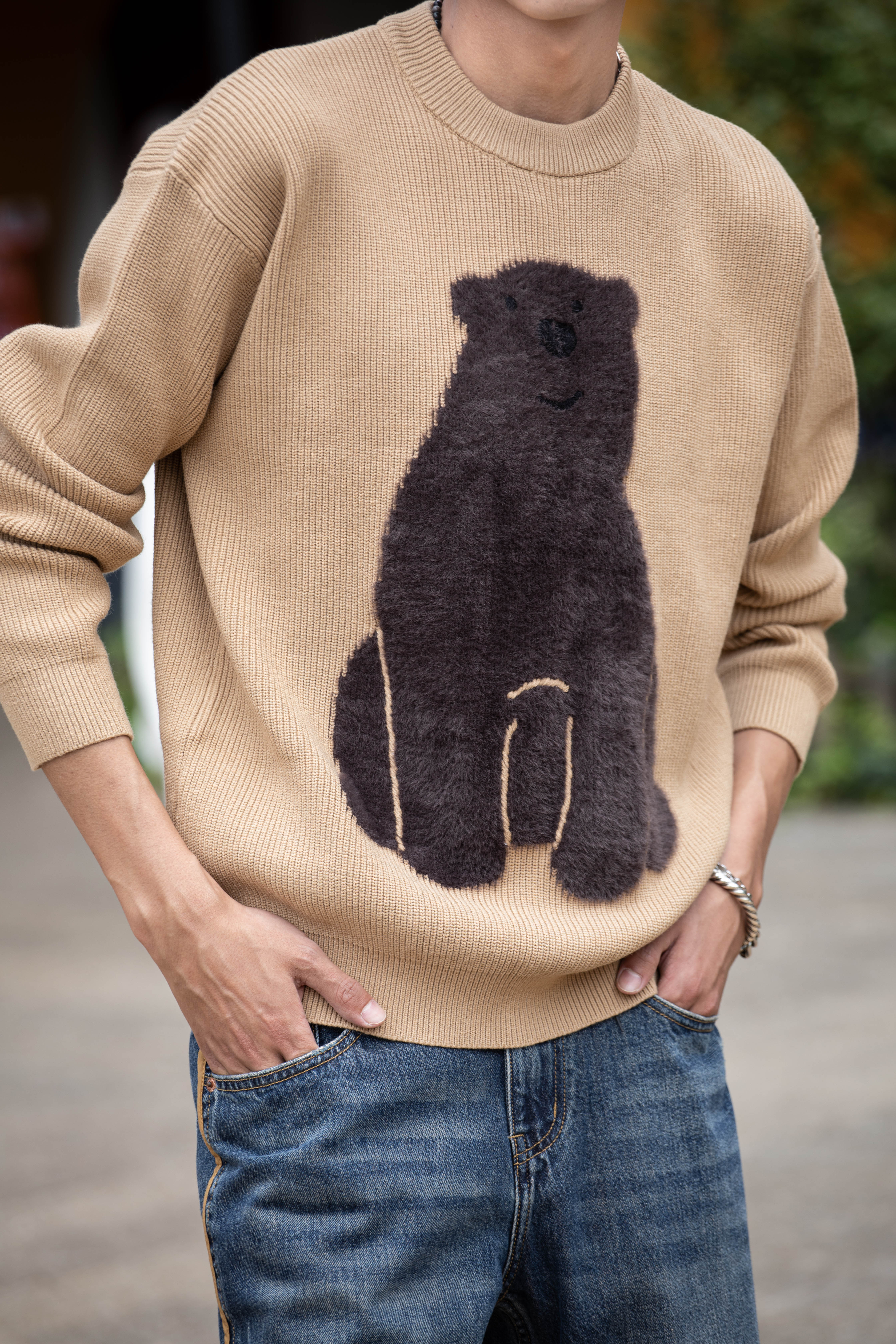W332843190短绒小熊针织衫