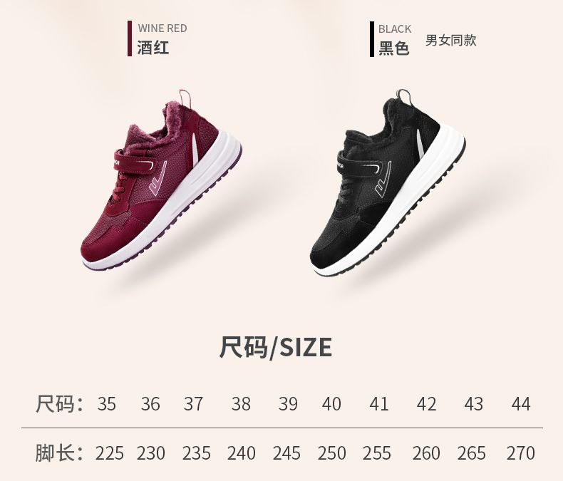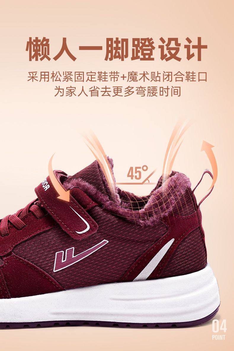 回力老人鞋女秋冬款加绒健步鞋妈妈软底减震中老年爸爸徒步运动鞋