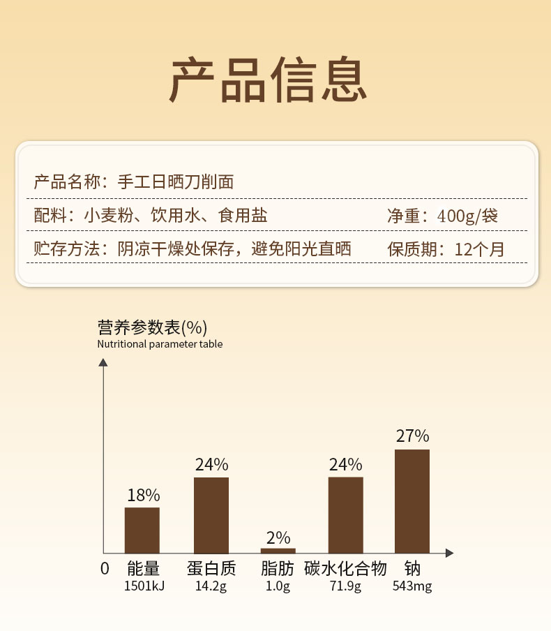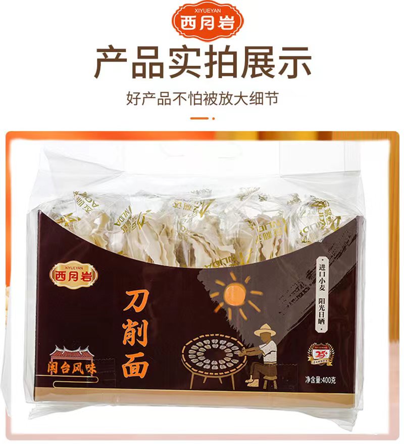 西月岩手工日晒刀削面(400g/袋 5小包)生产日期: 3月
