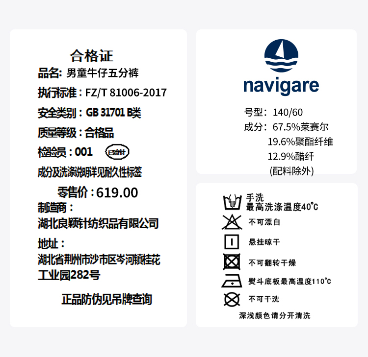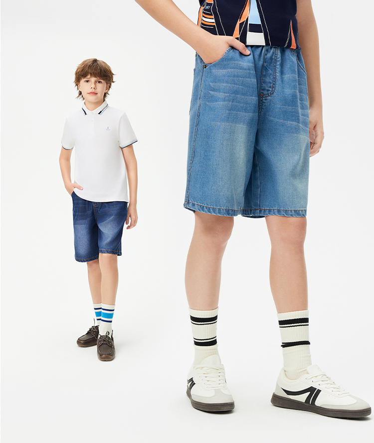 【纳维凯尔】【天丝软牛仔】【120-165】Navigare意大利小帆船童装男童工装短裤五分裤子