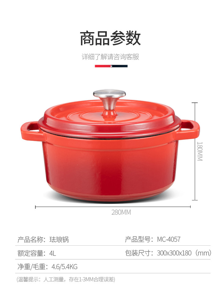 【迈卡罗】迈卡罗珐琅锅4L加厚搪瓷锅燃气电磁炉通用不粘锅MC-4057