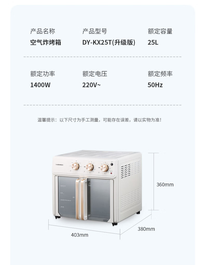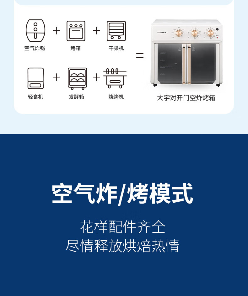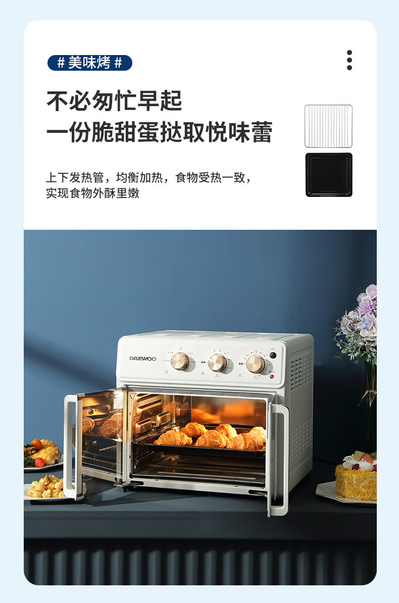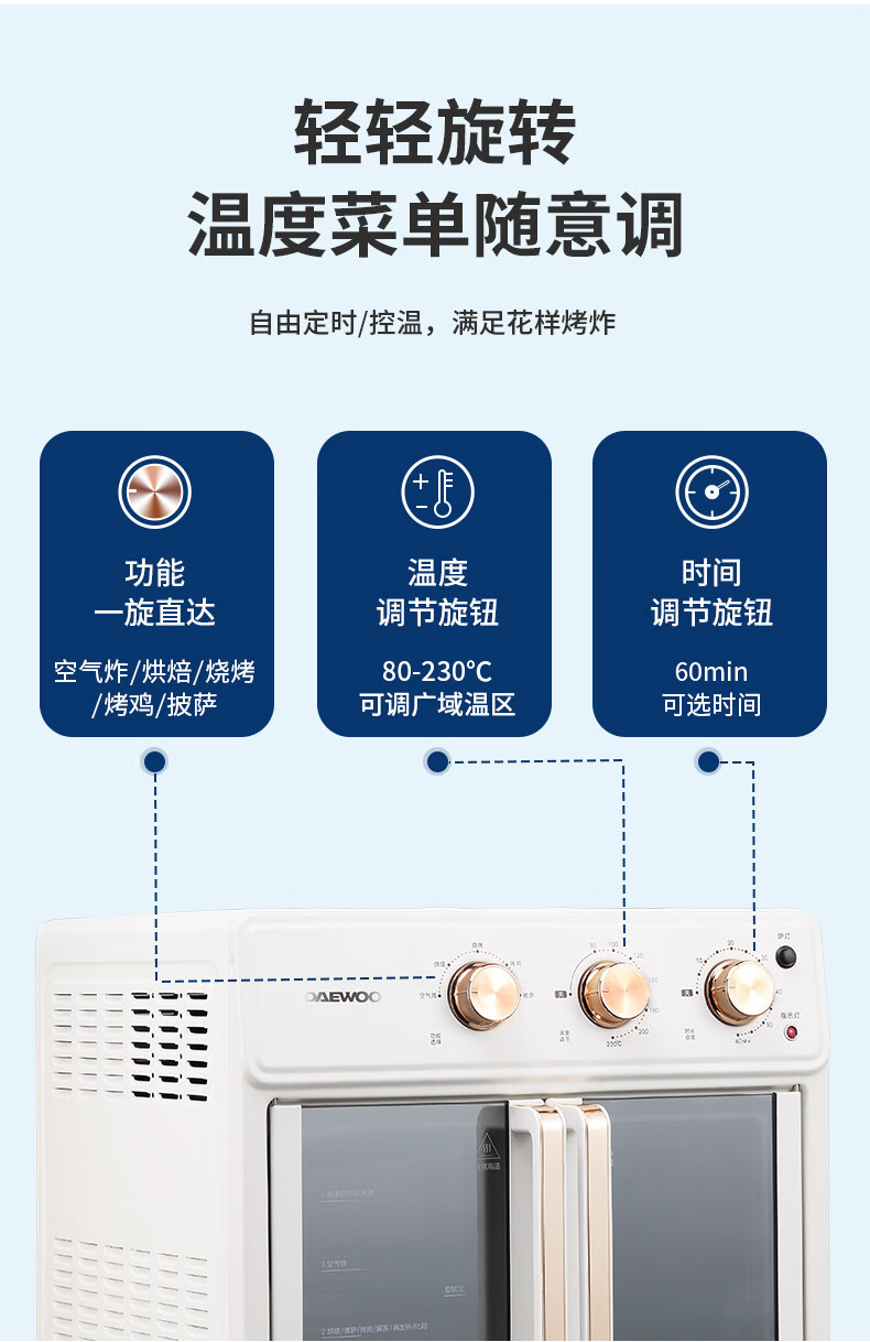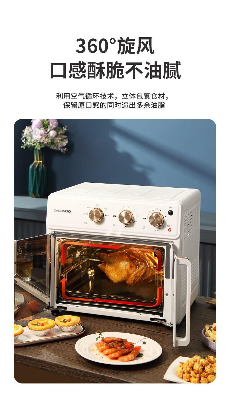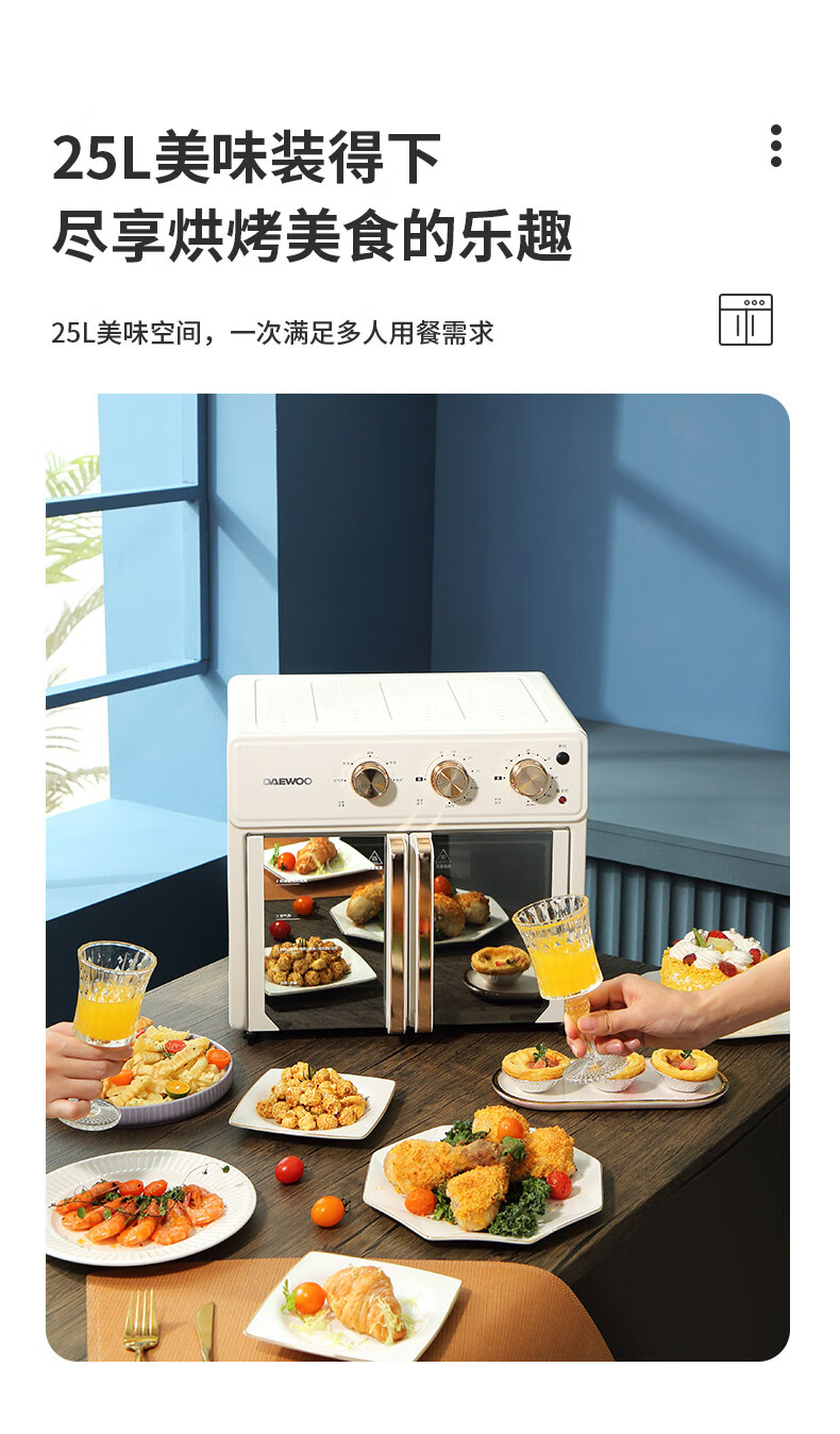 大宇(DAEWOO)电烤箱家用宿舍多功能全自动烘焙机大容量空气炸烤箱DY-KX25T升级版_DY-KX25T