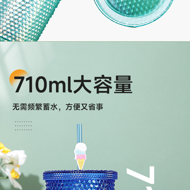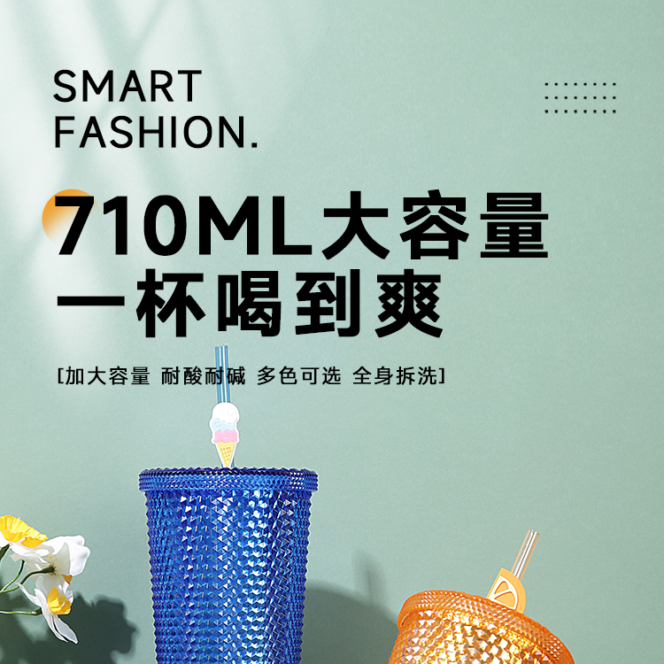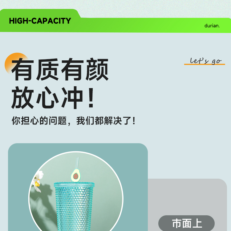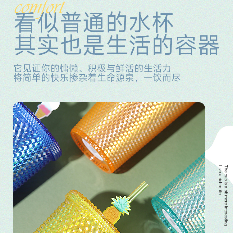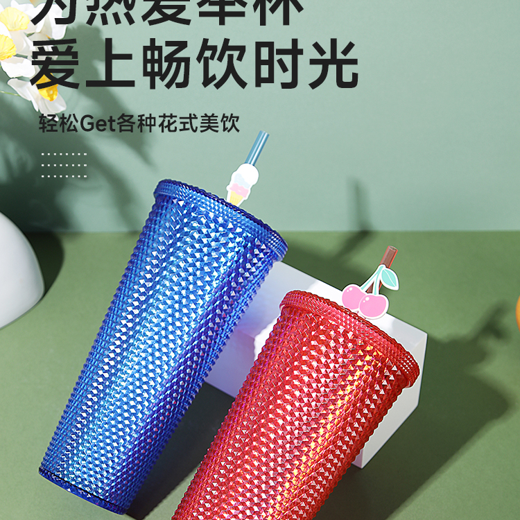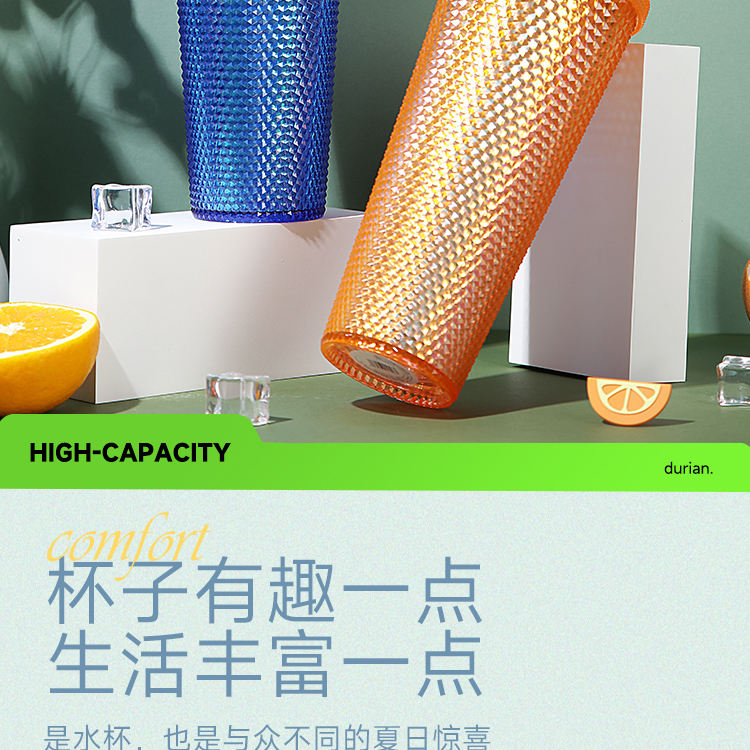 大容量幻彩钻石榴莲吸管杯