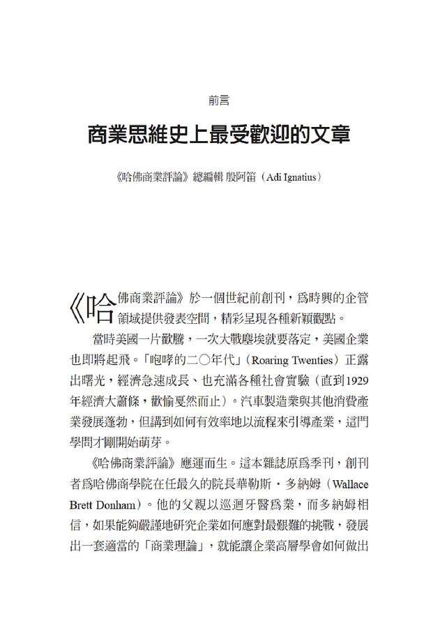 這本書收錄《哈佛商業評論》自創刊以來*具影響力的重要構想,包括: