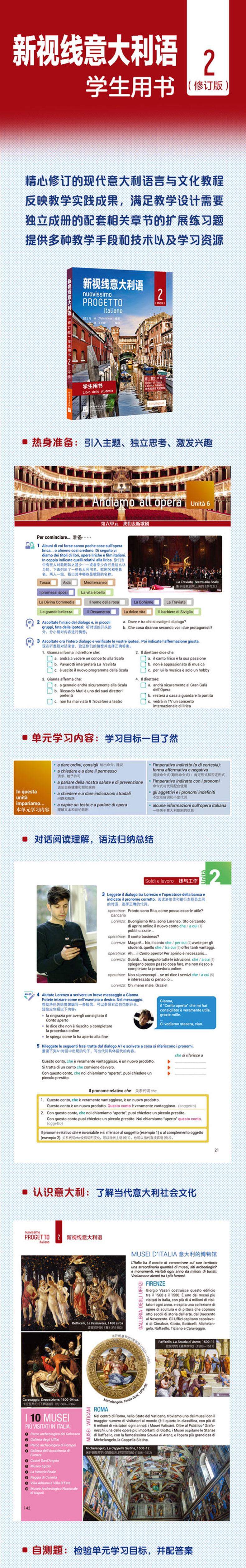 充分平衡交际与语法内容 有效融入归纳式教学法 系统训练四项语言技能 快速提升语言运用能力 全面展示当今意大利社会文化