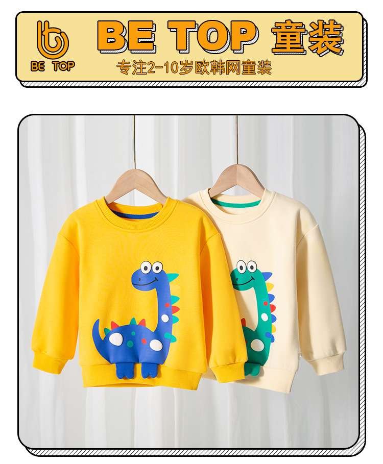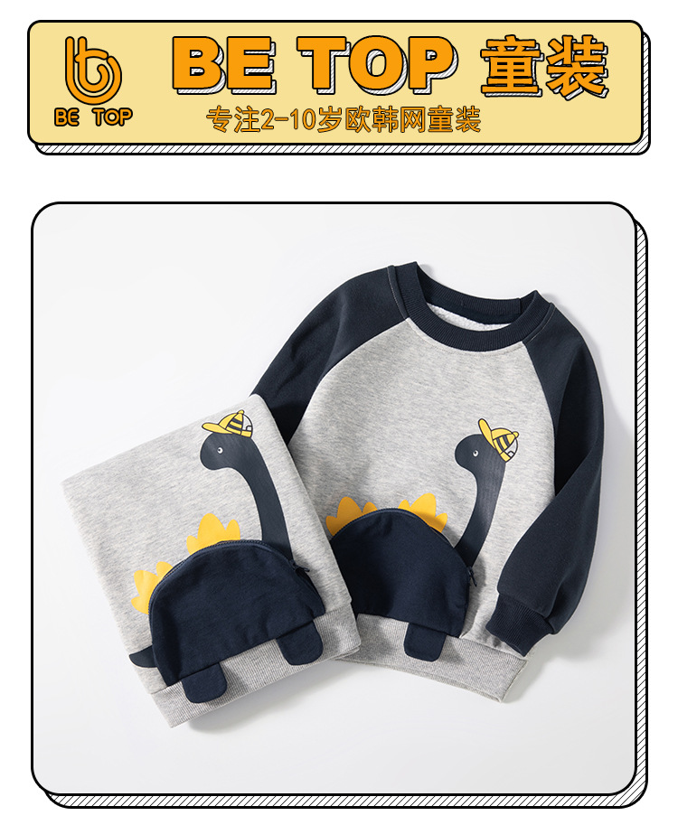 【69元起2件】【专柜品质】 be top潮牌童装秋冬季全棉儿童卫衣 立体卡通数码印花男童上衣