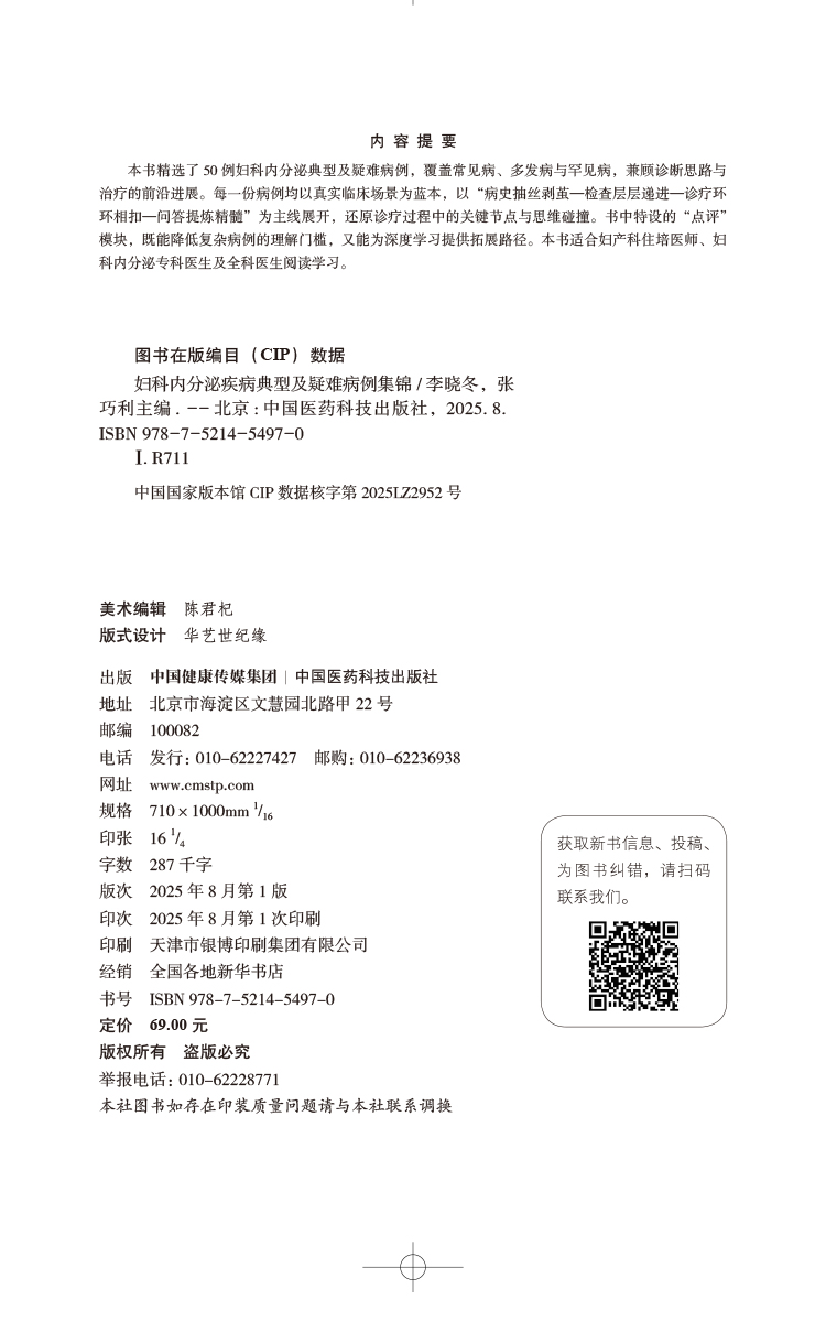 妇科内分泌疾病典型及疑难病例集锦 李晓冬 张巧利 适合妇产科住培医师 妇科内分泌专科医生及全科医生阅读学习中国医药科技出版社