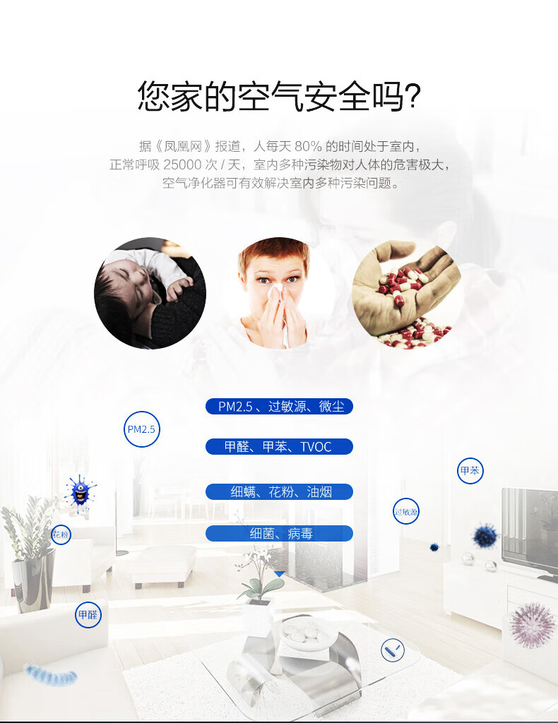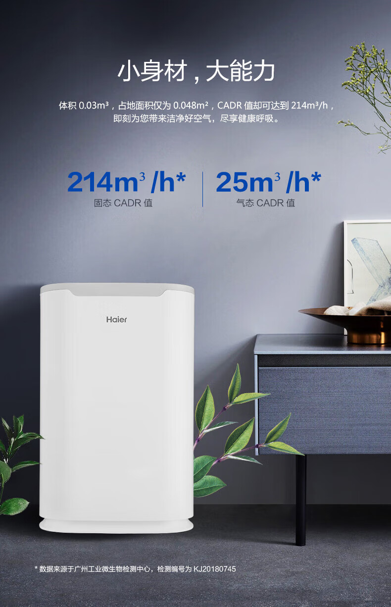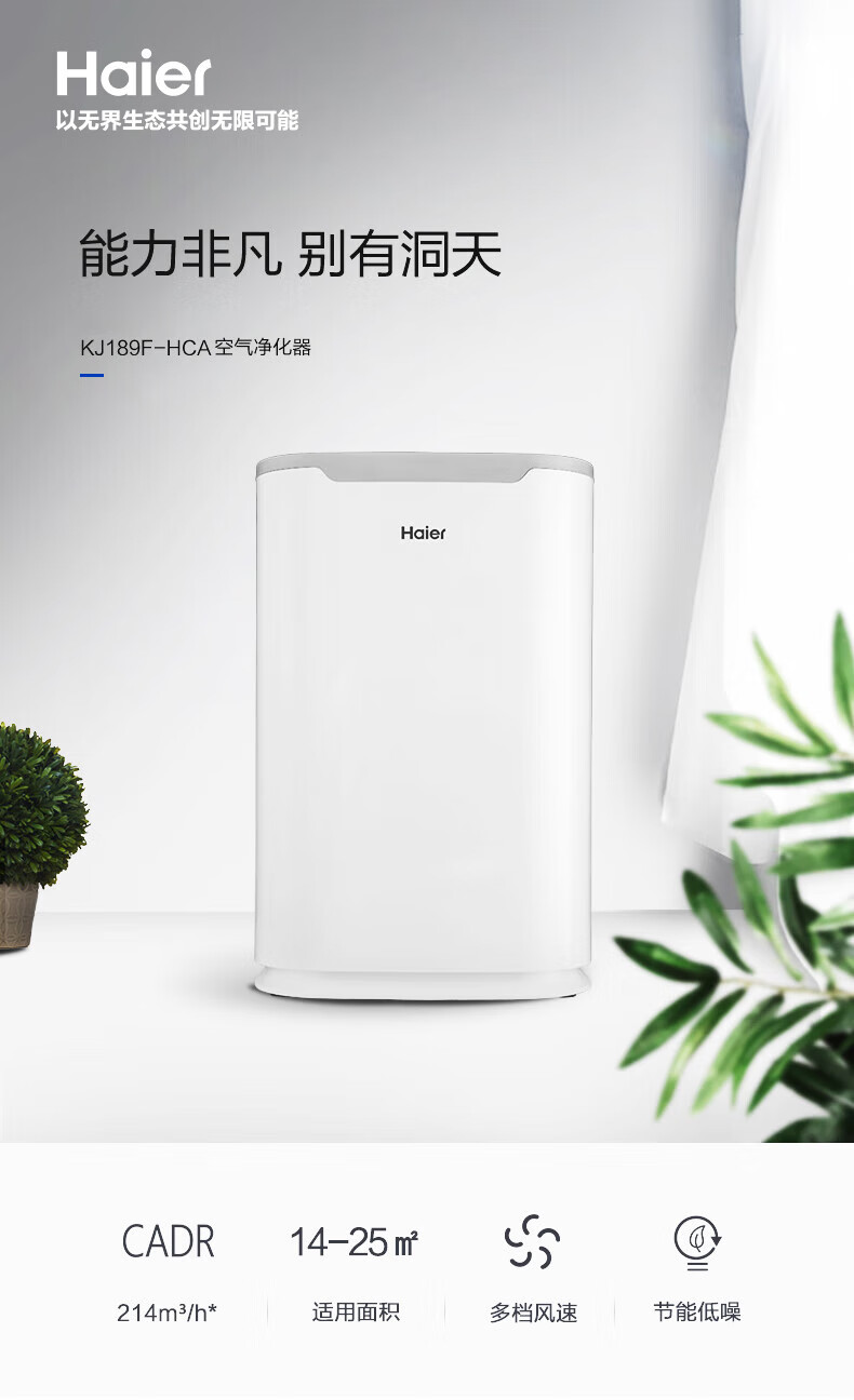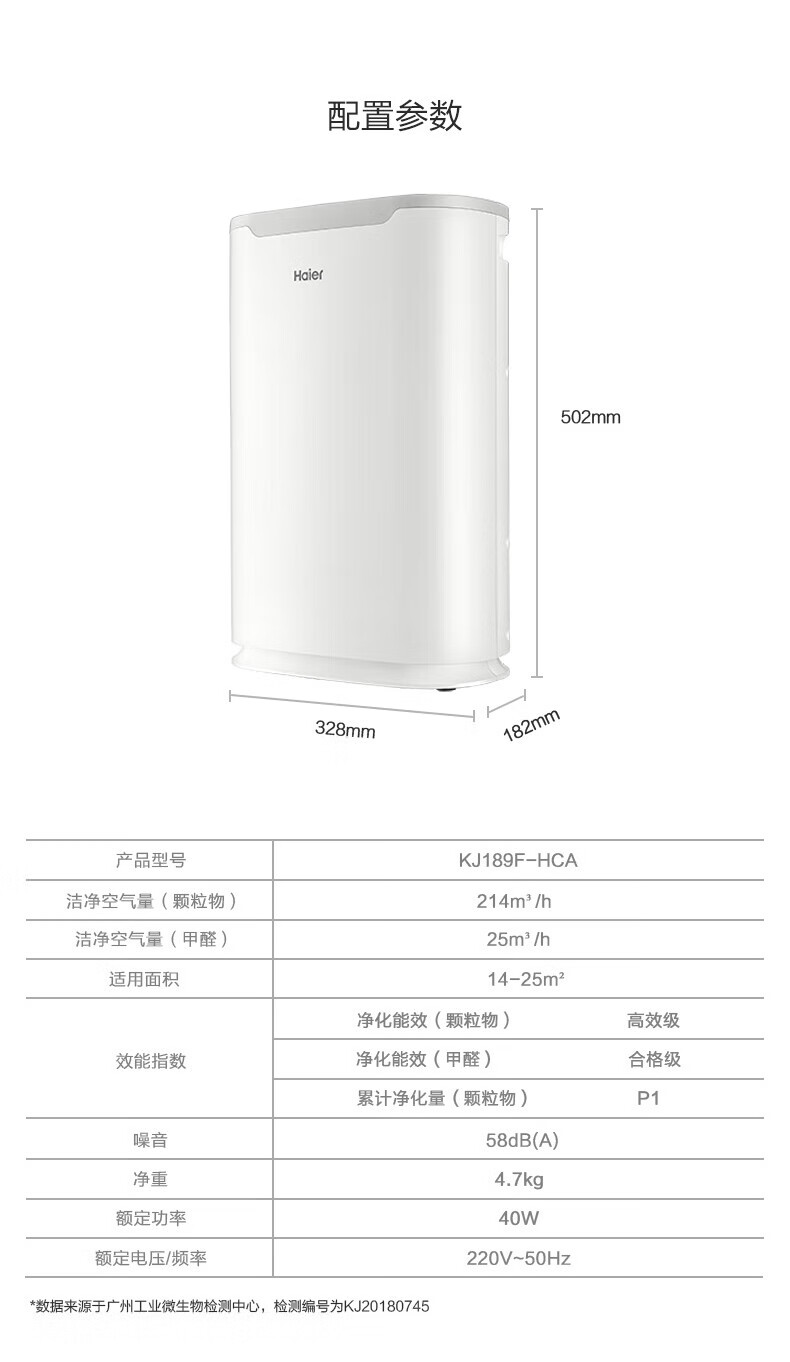 海尔(Haier)家用空气净化器除甲醛全屋净化定时除二手烟除臭净化机大风量除异味KJ189F-HCA白色