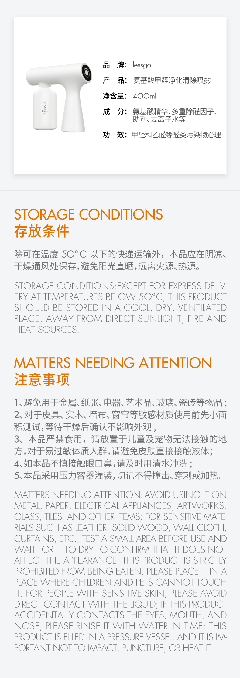 lessgo氨基酸甲醛净化电喷枪+喷雾组合