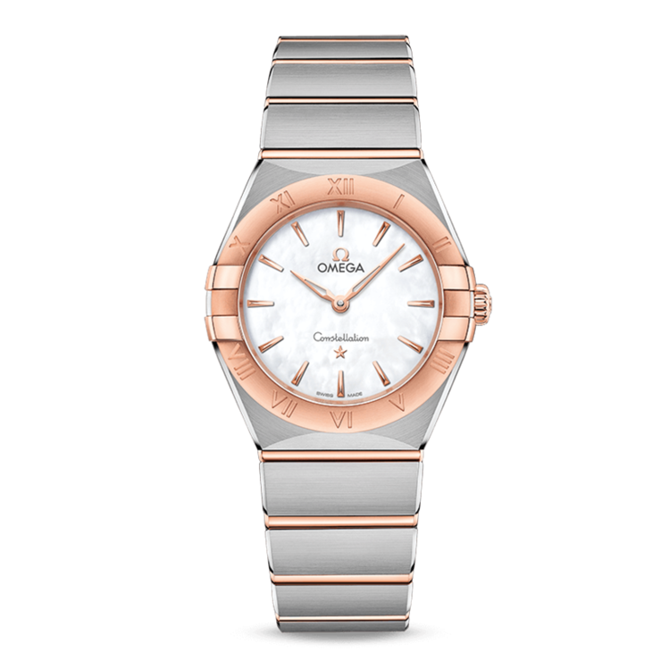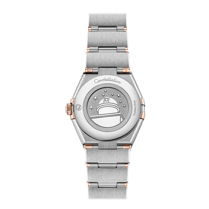 镜面材质 | 蓝宝石水晶玻璃 | 表盘 | 经典的半月形切面、“托爪”以及mono-rang表链。 Sedna® 18K金与精钢打造,表圈镌刻罗马数字刻度,白色珍珠母贝表盘,覆以耐磨损蓝宝石玻璃表镜。指针、欧米茄品牌标识、星座徽标以及小时刻度亦以Sedna® 18K金打造而成。 密底,表背印有星座天文台徽章。 |