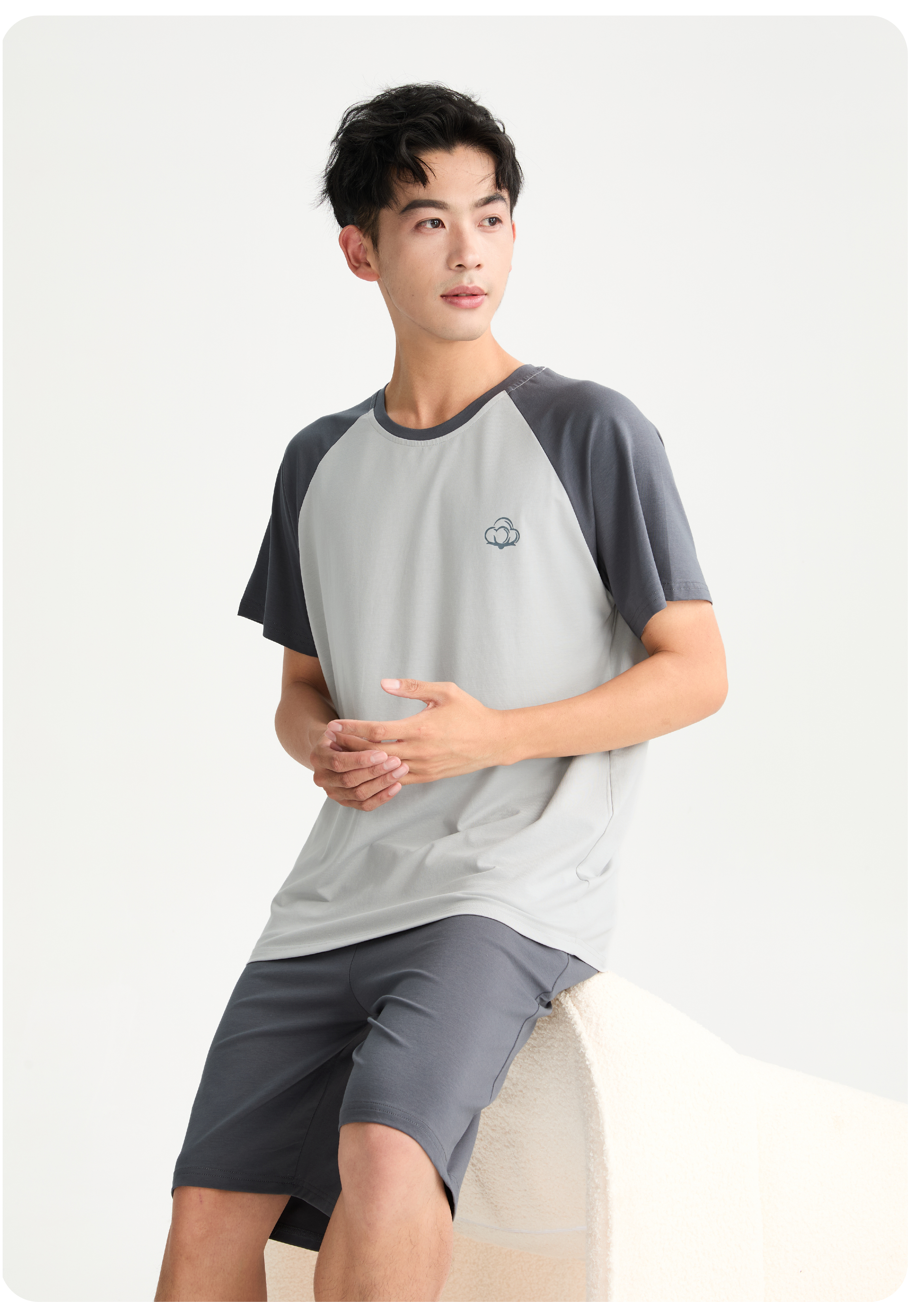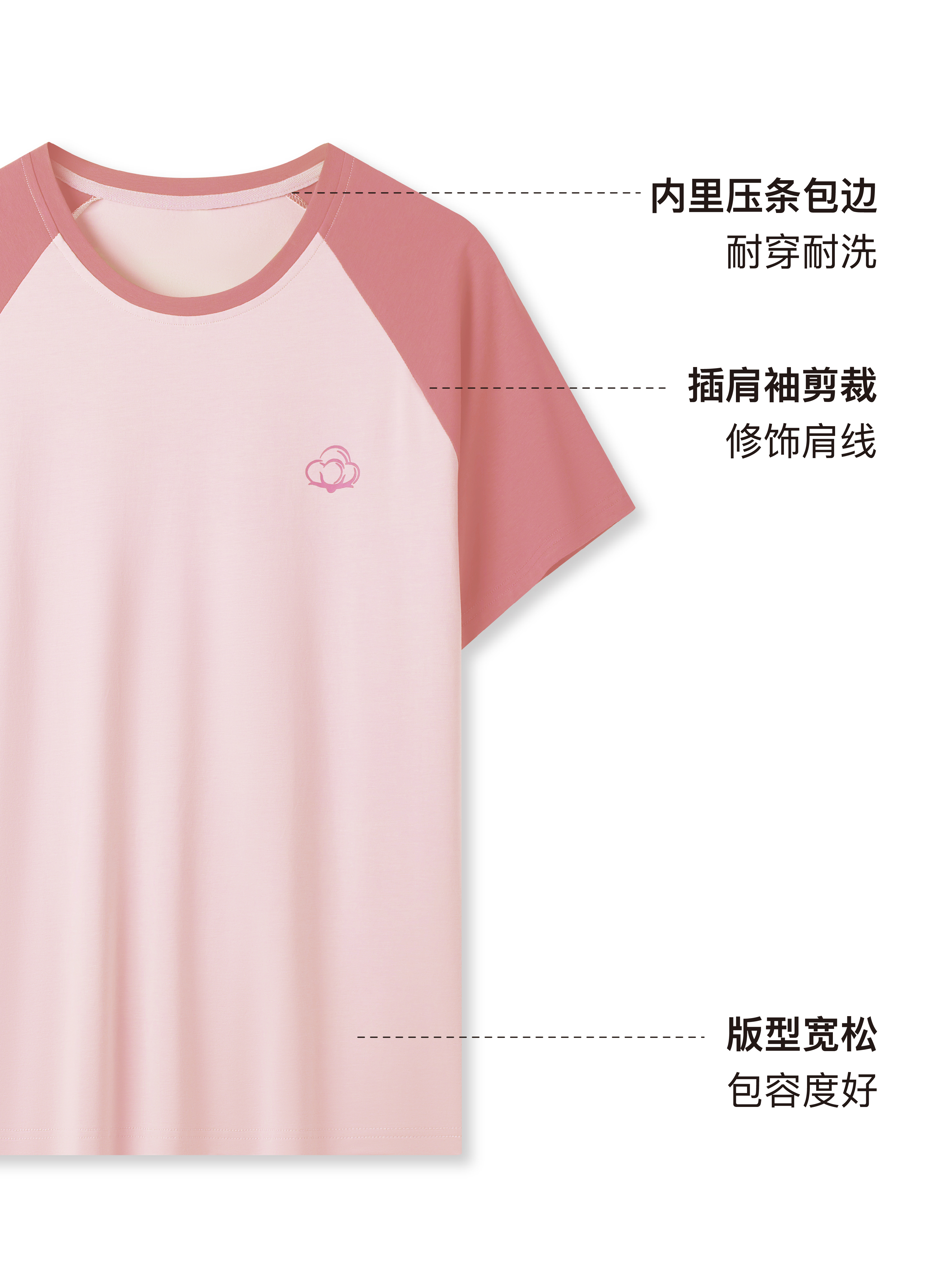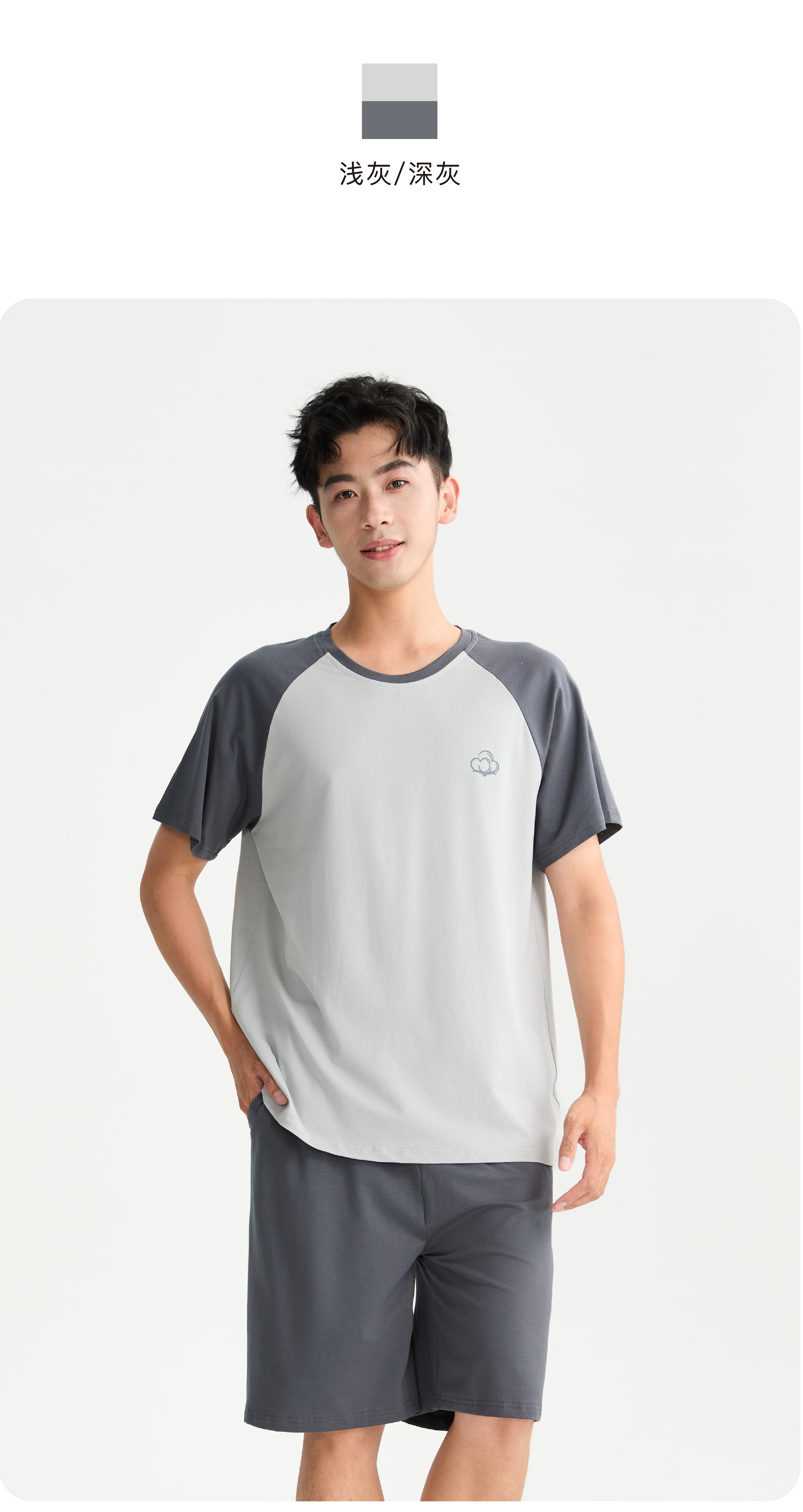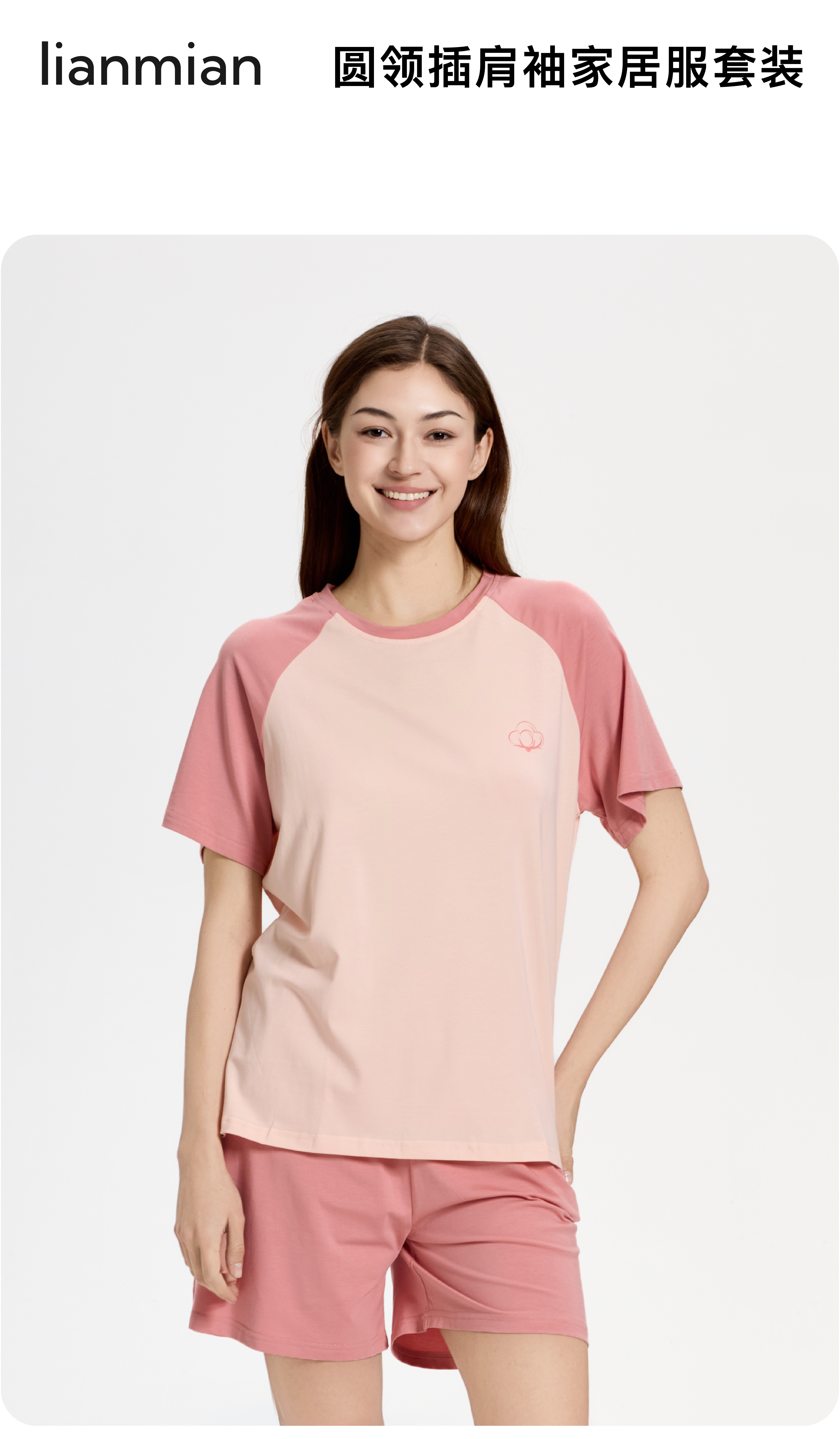 连绵·圆领插肩袖家居服套装 男/女款(无胸垫款)