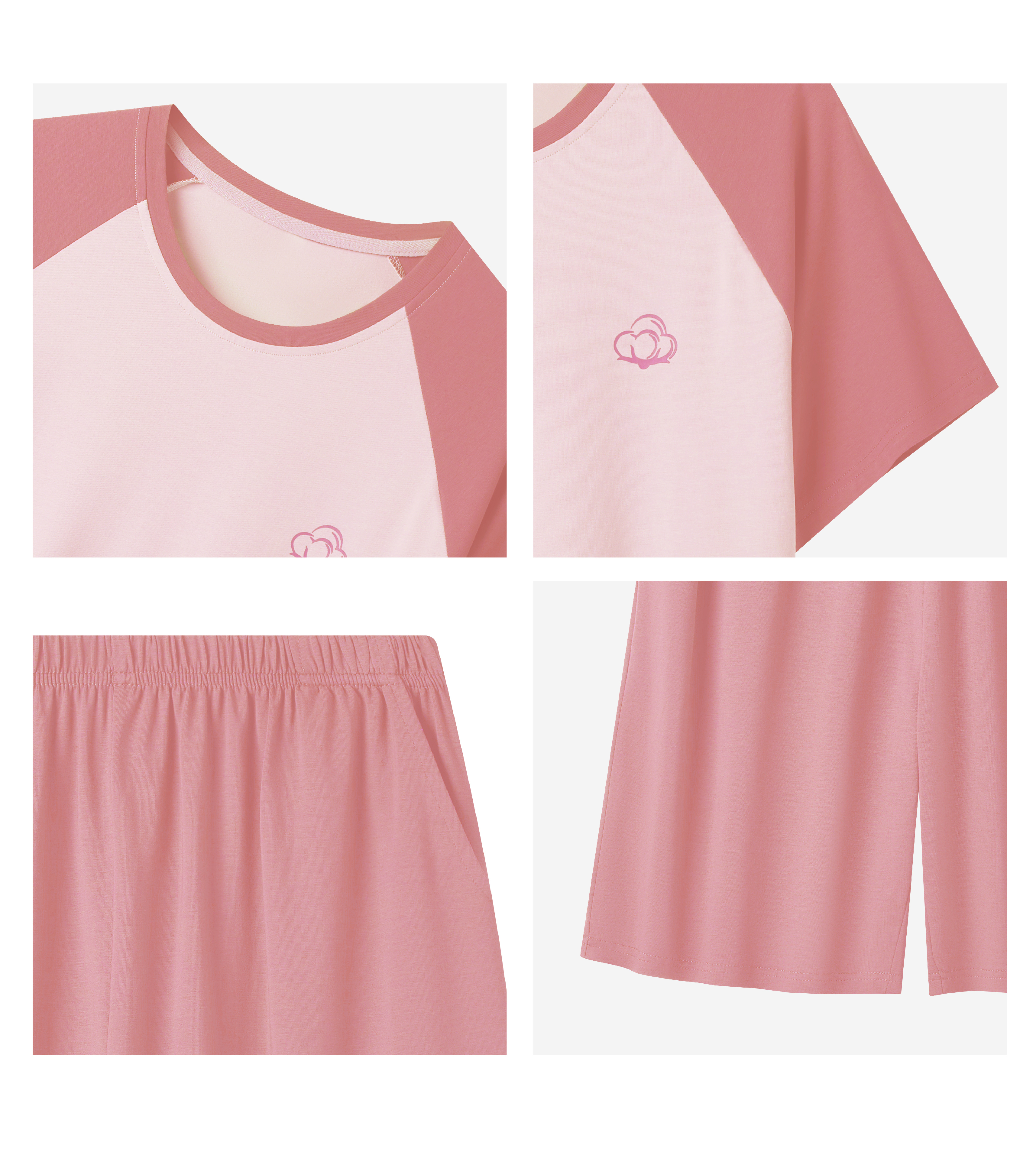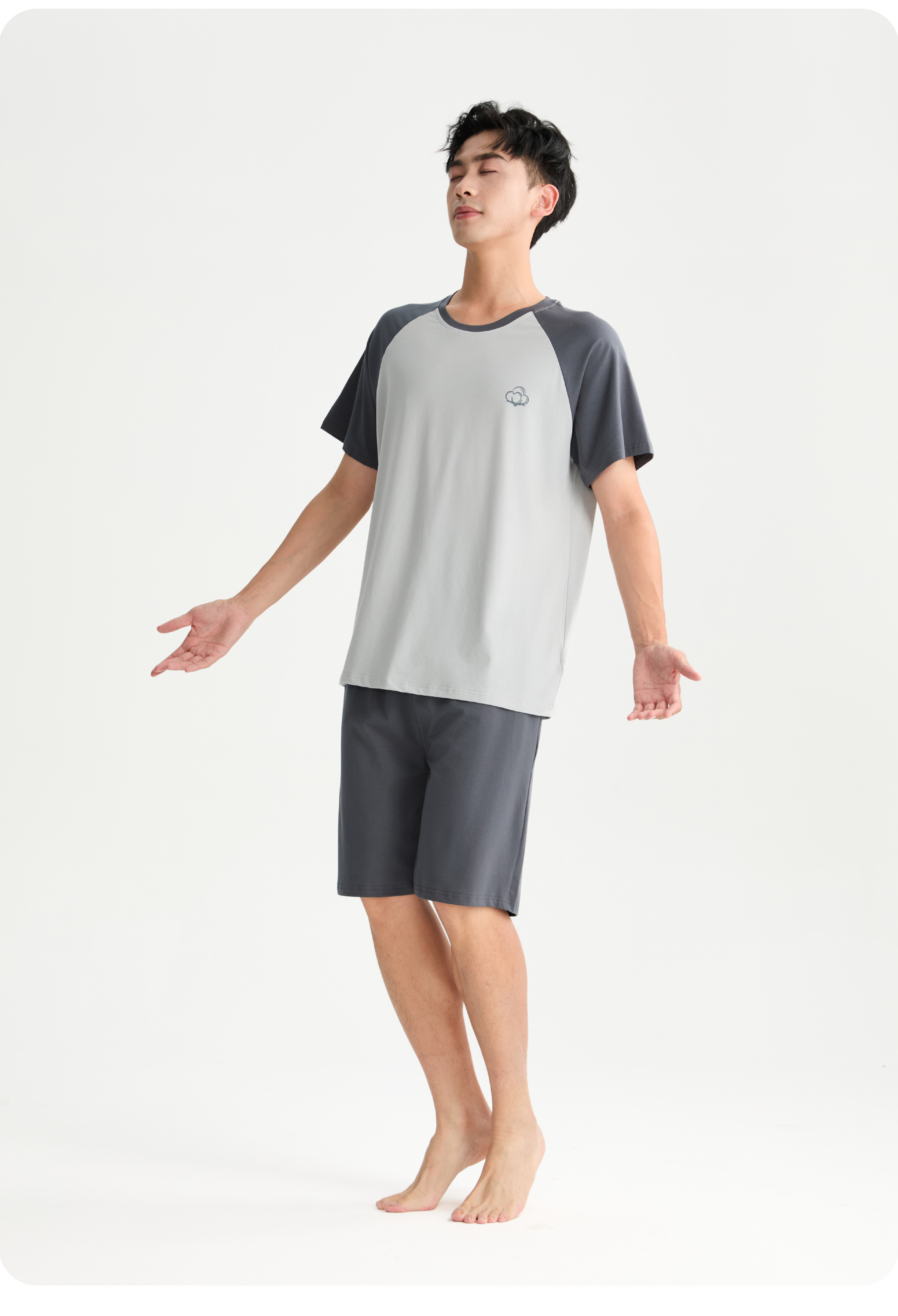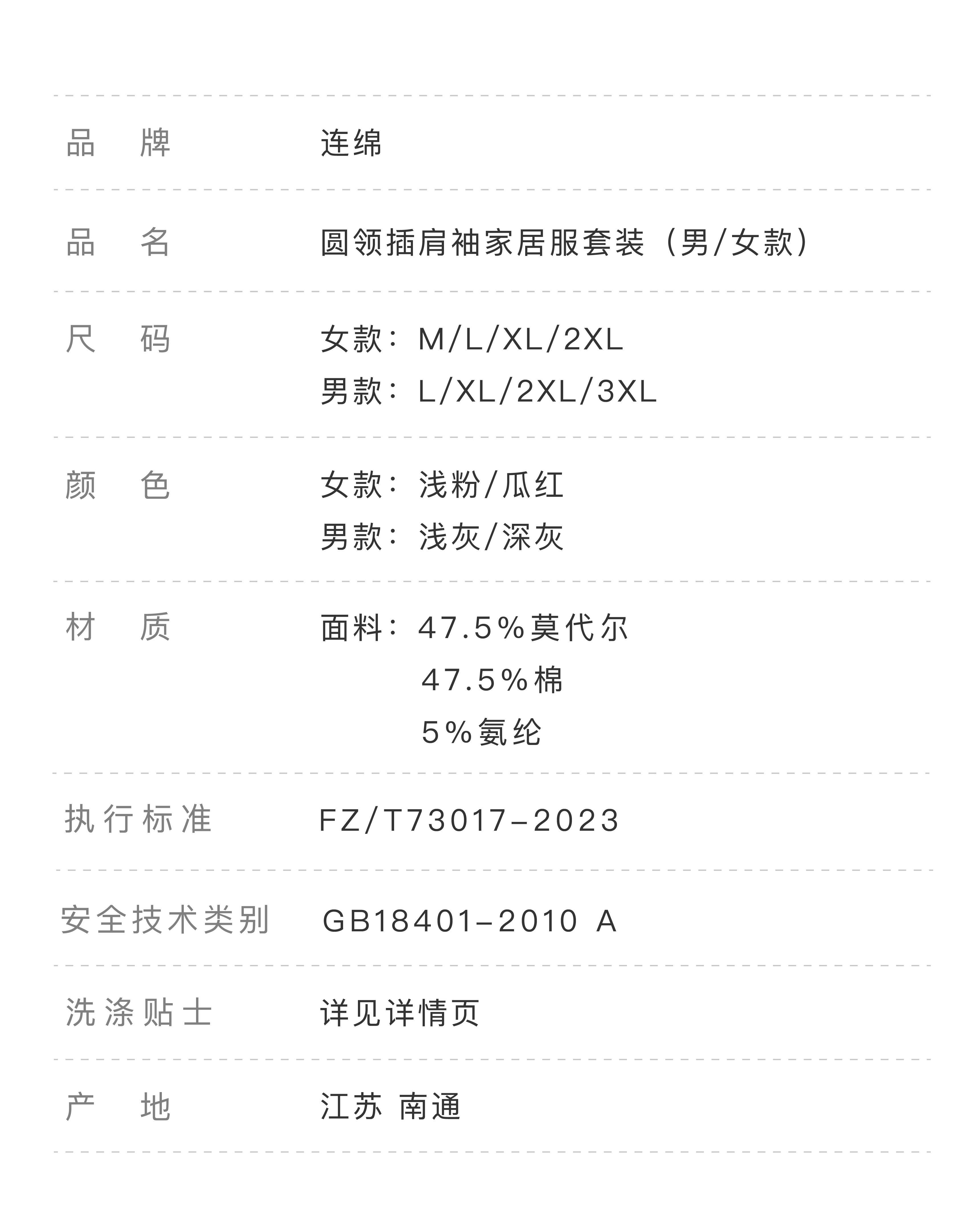 连绵·圆领插肩袖家居服套装 男/女款(无胸垫款)