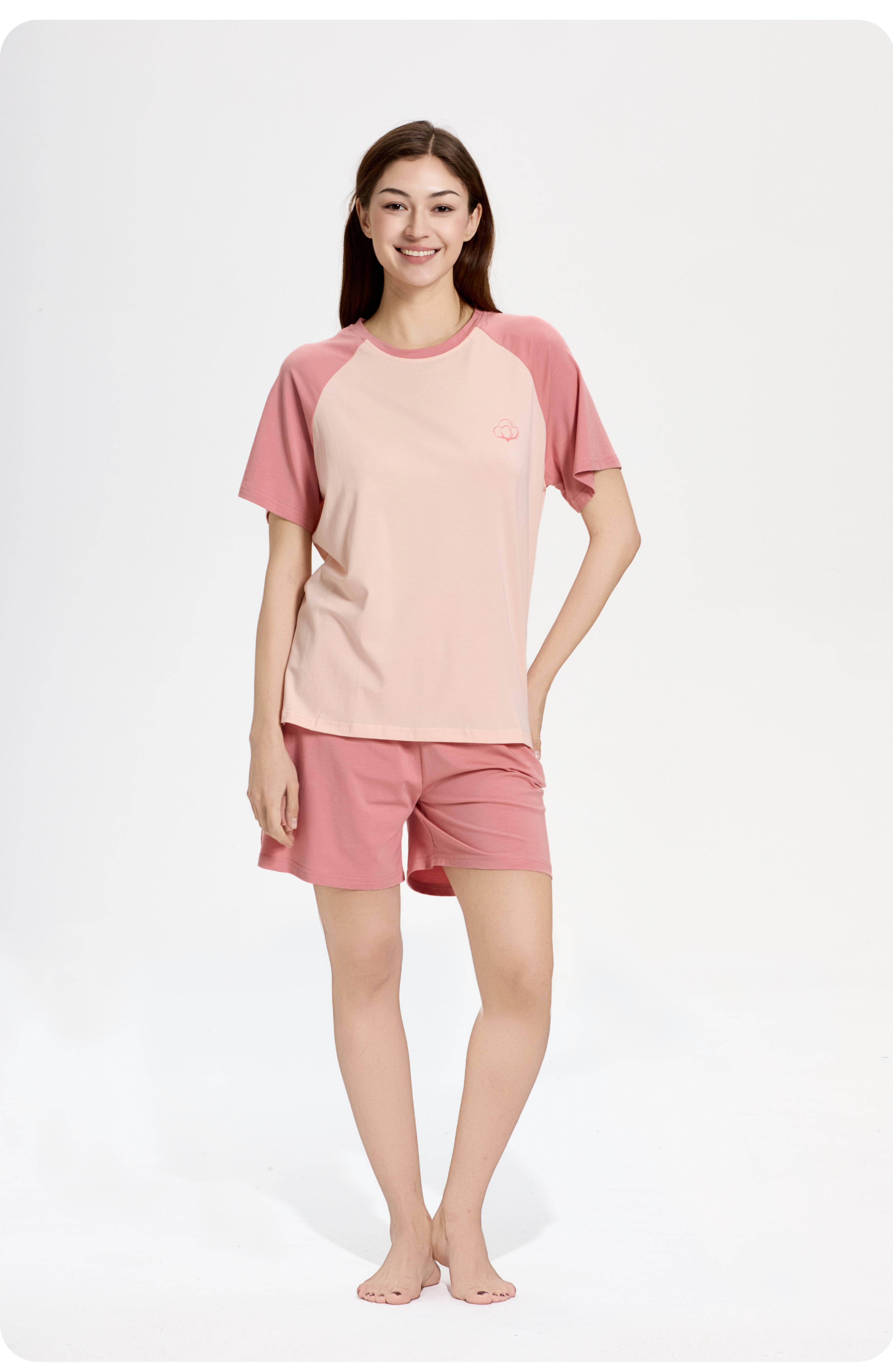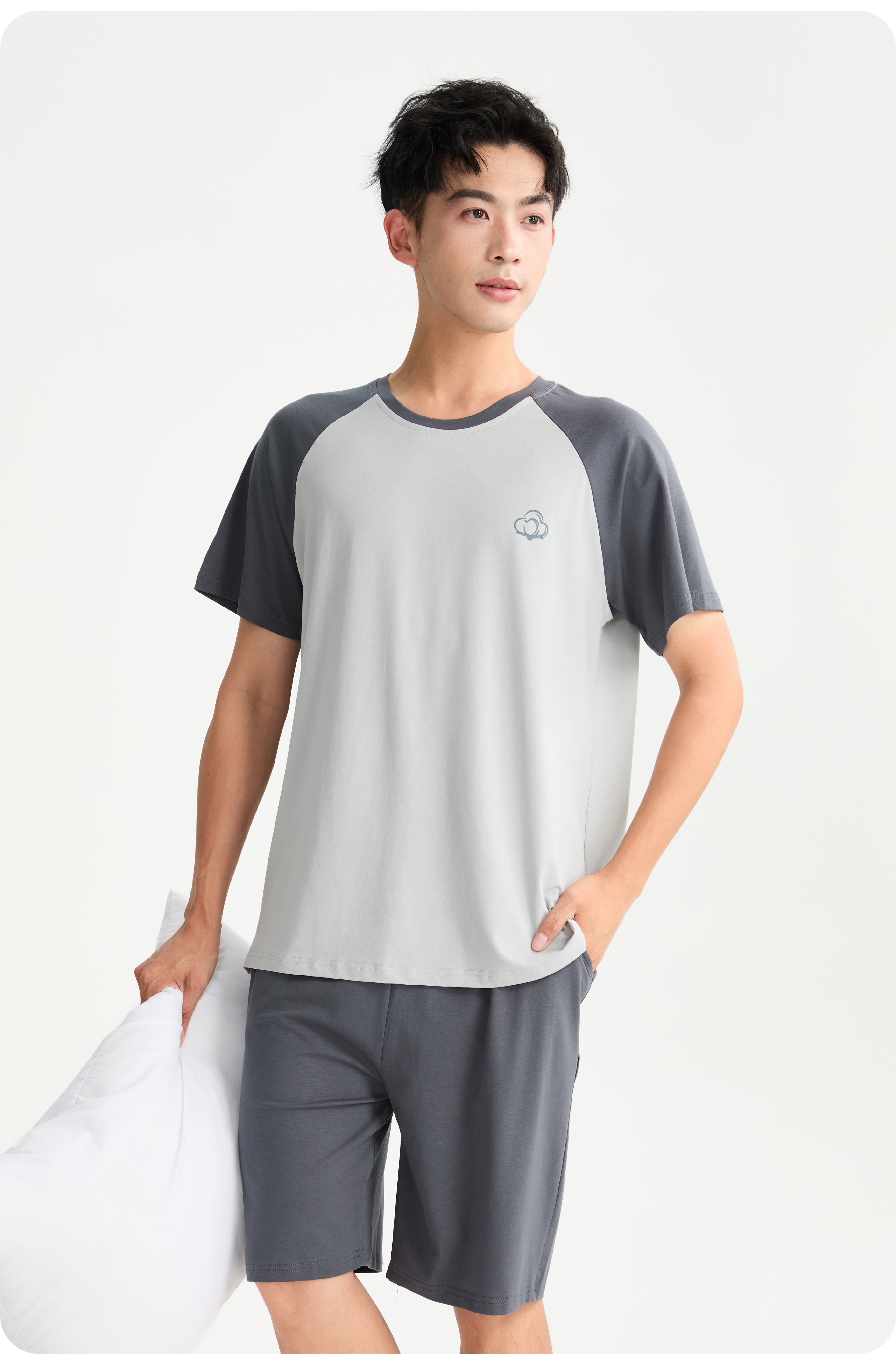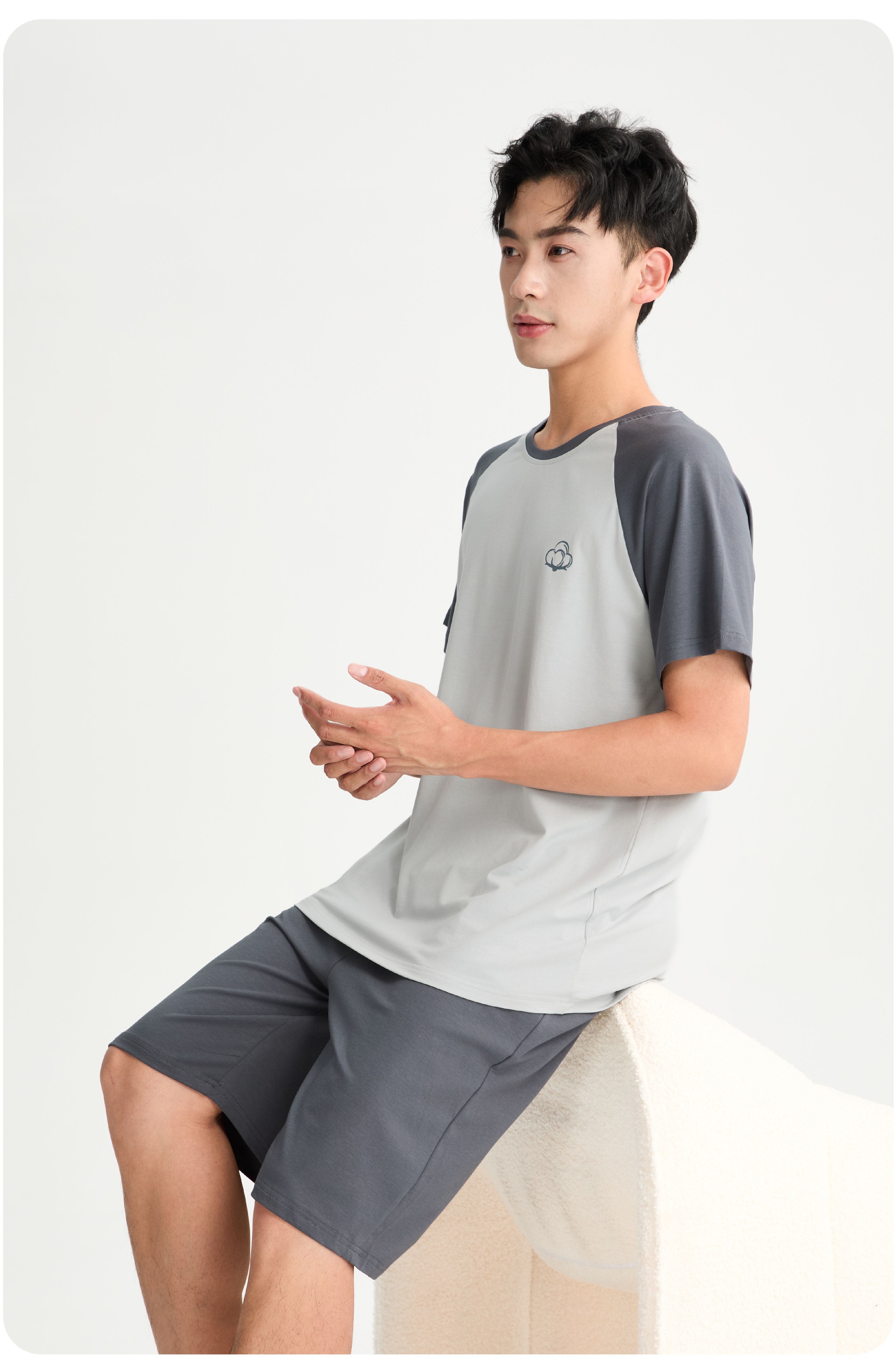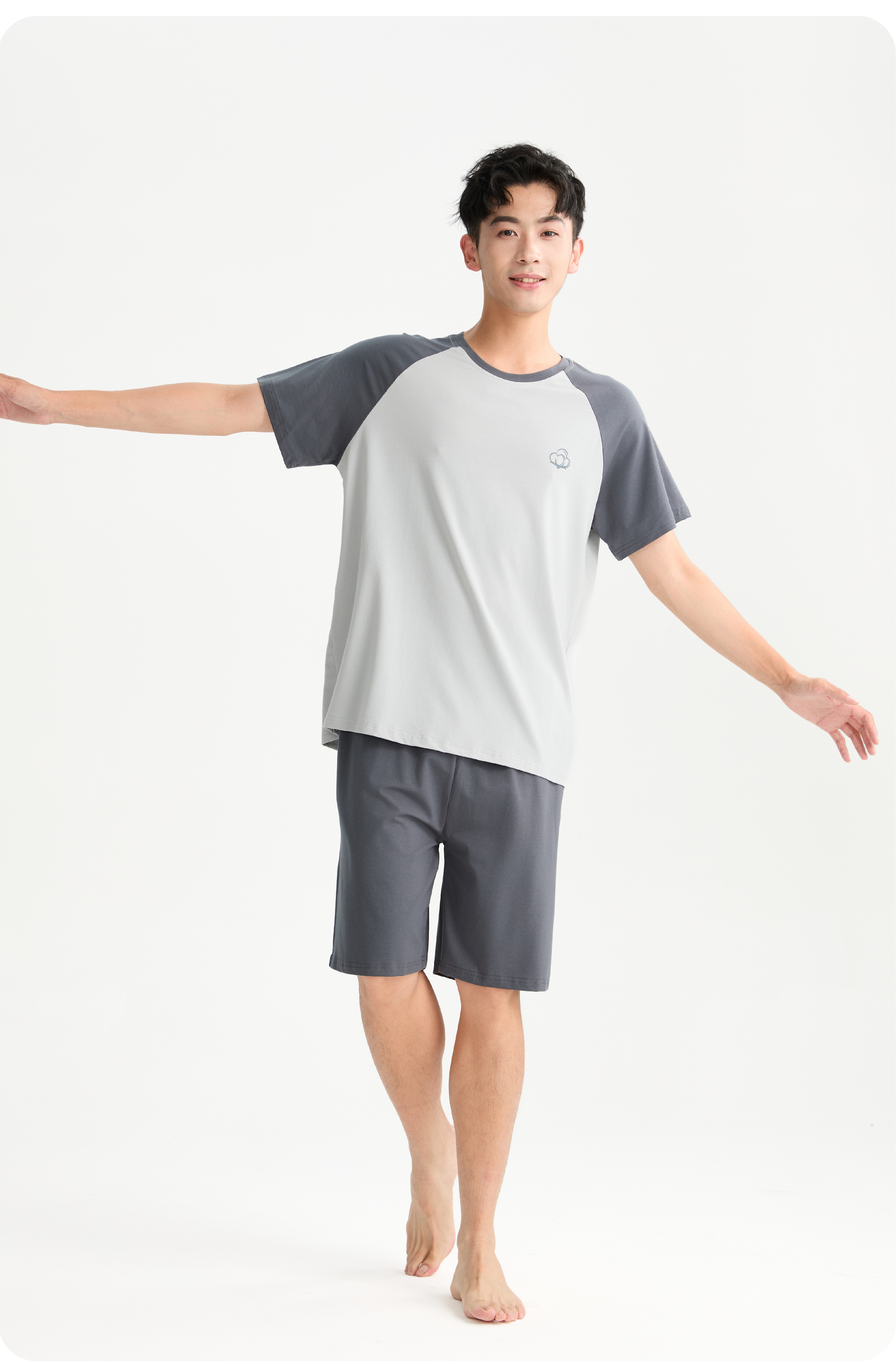 连绵·圆领插肩袖家居服套装 男/女款(无胸垫款)