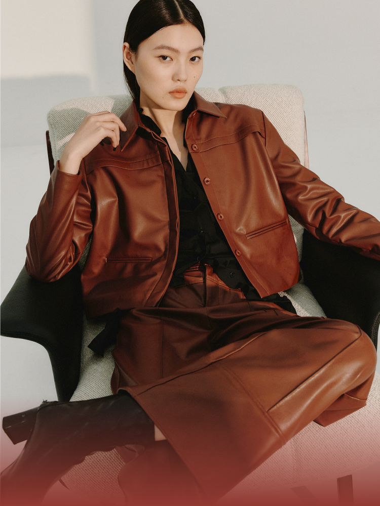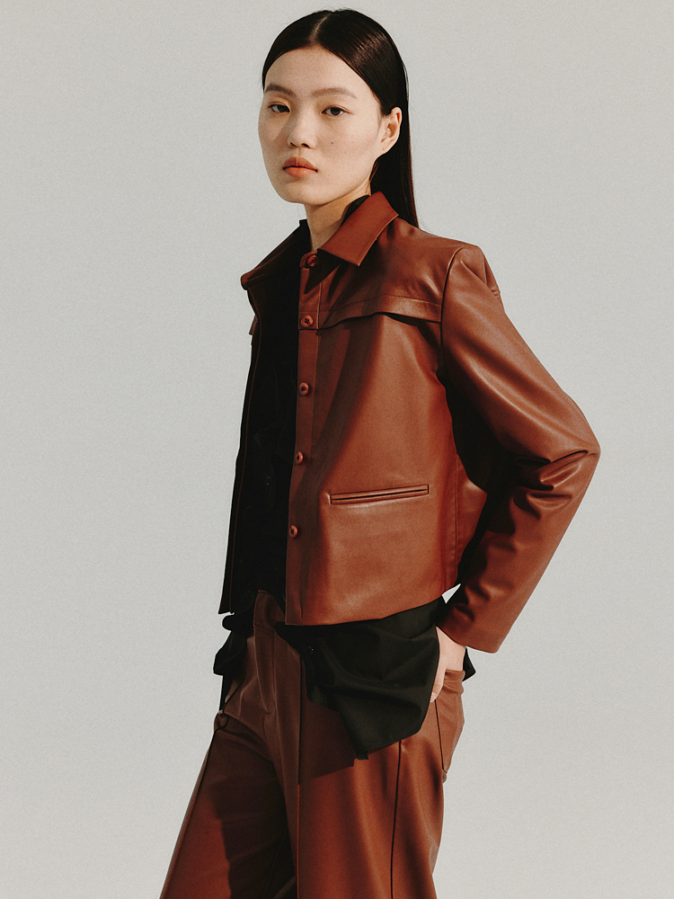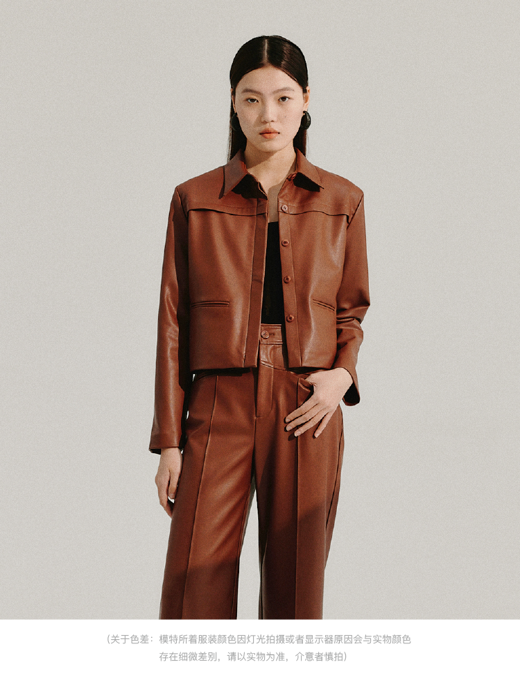 LIYIHAN 箱型短款皮衣 Y233T01516