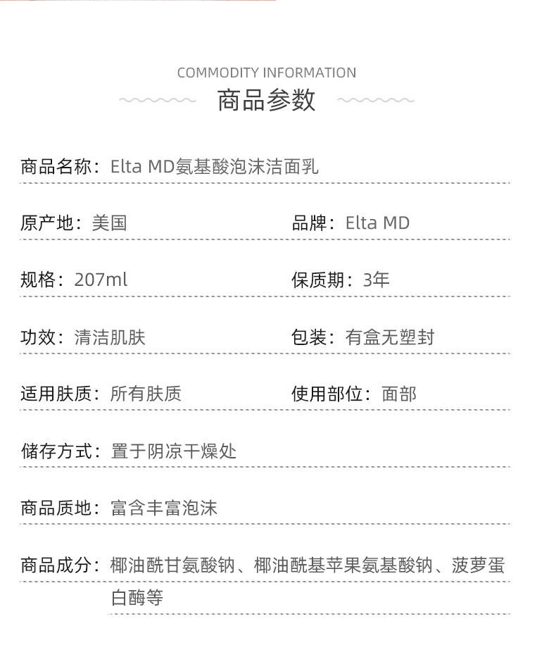 【中欧班列精选】 Elta MD安妍科进口氨基酸泡沫洗面奶清洁毛孔补水深层洁面洁面乳 207ml SJ