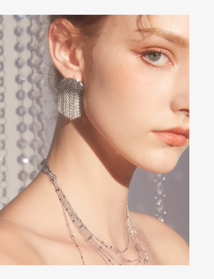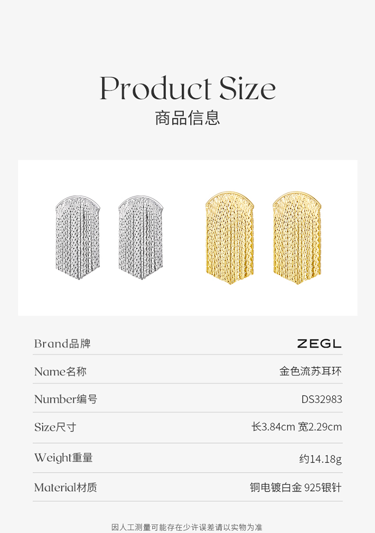 ZEGL银色流苏耳环女2023年新款潮耳钉小众925银针高级感复古耳饰