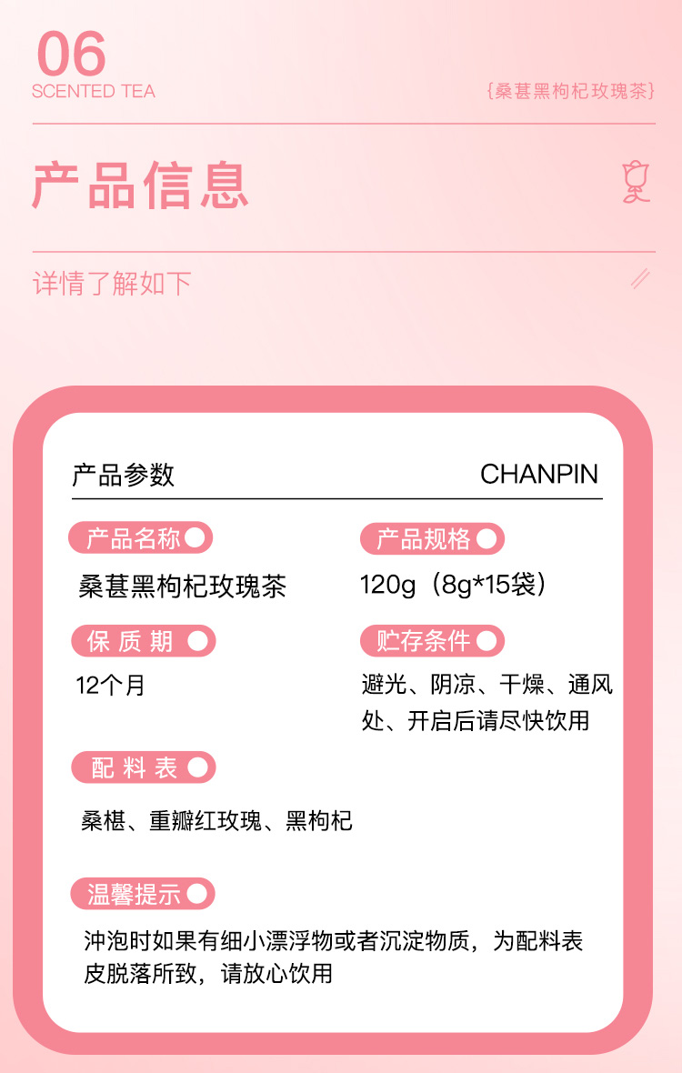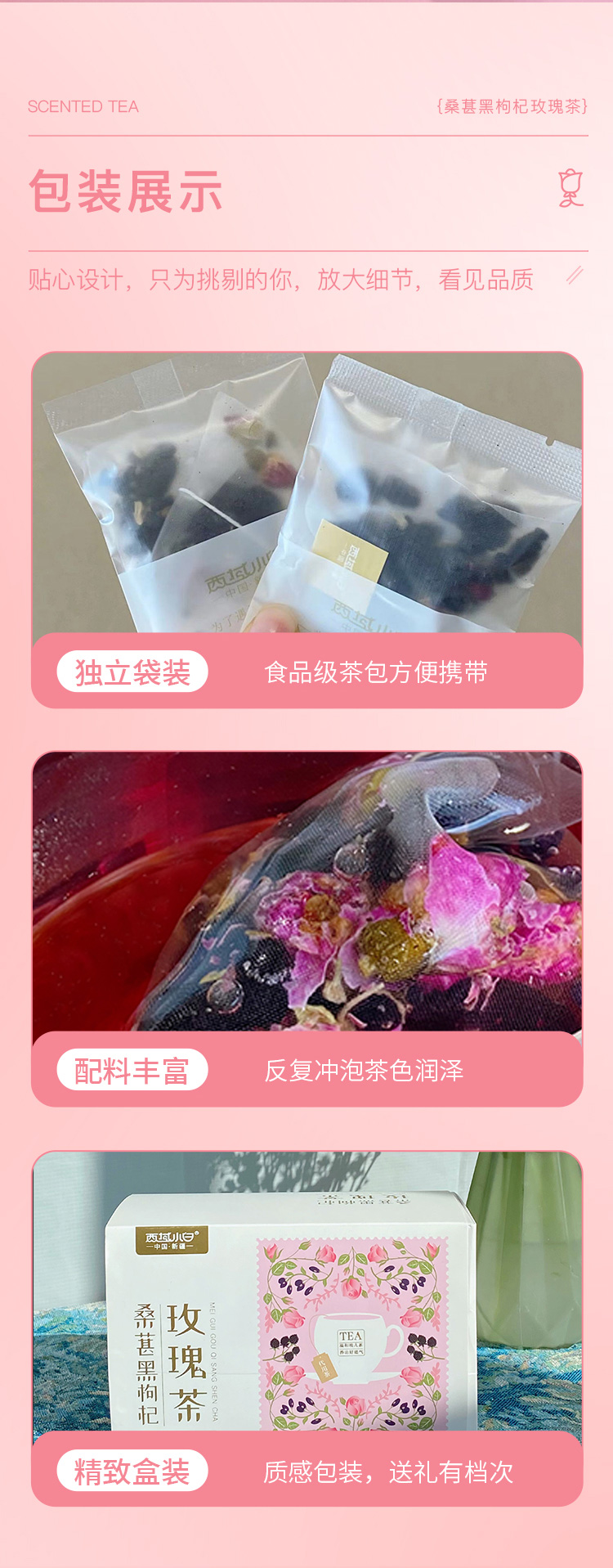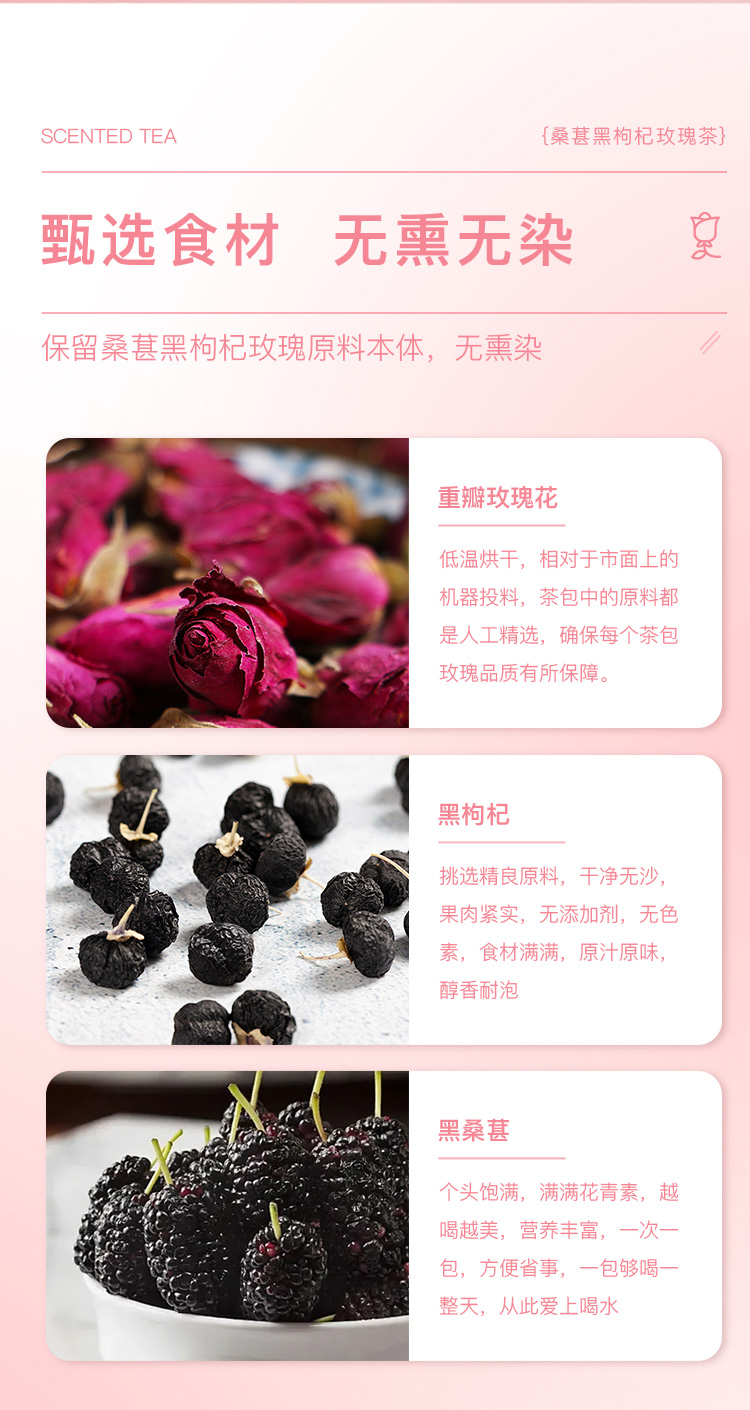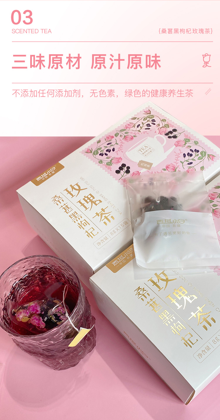 新疆 西域小白 桑葚黑枸杞玫瑰茶8g*15(120g)