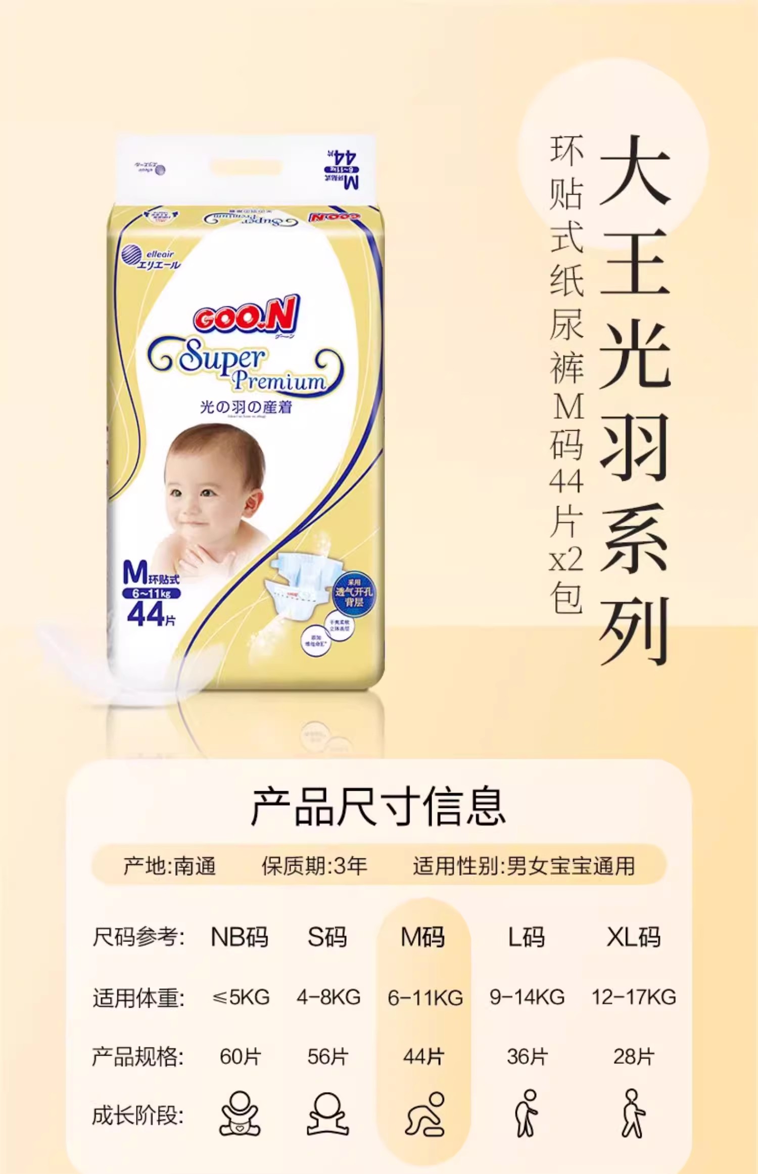 GOO.N®大王光羽系列纸尿裤拉拉裤