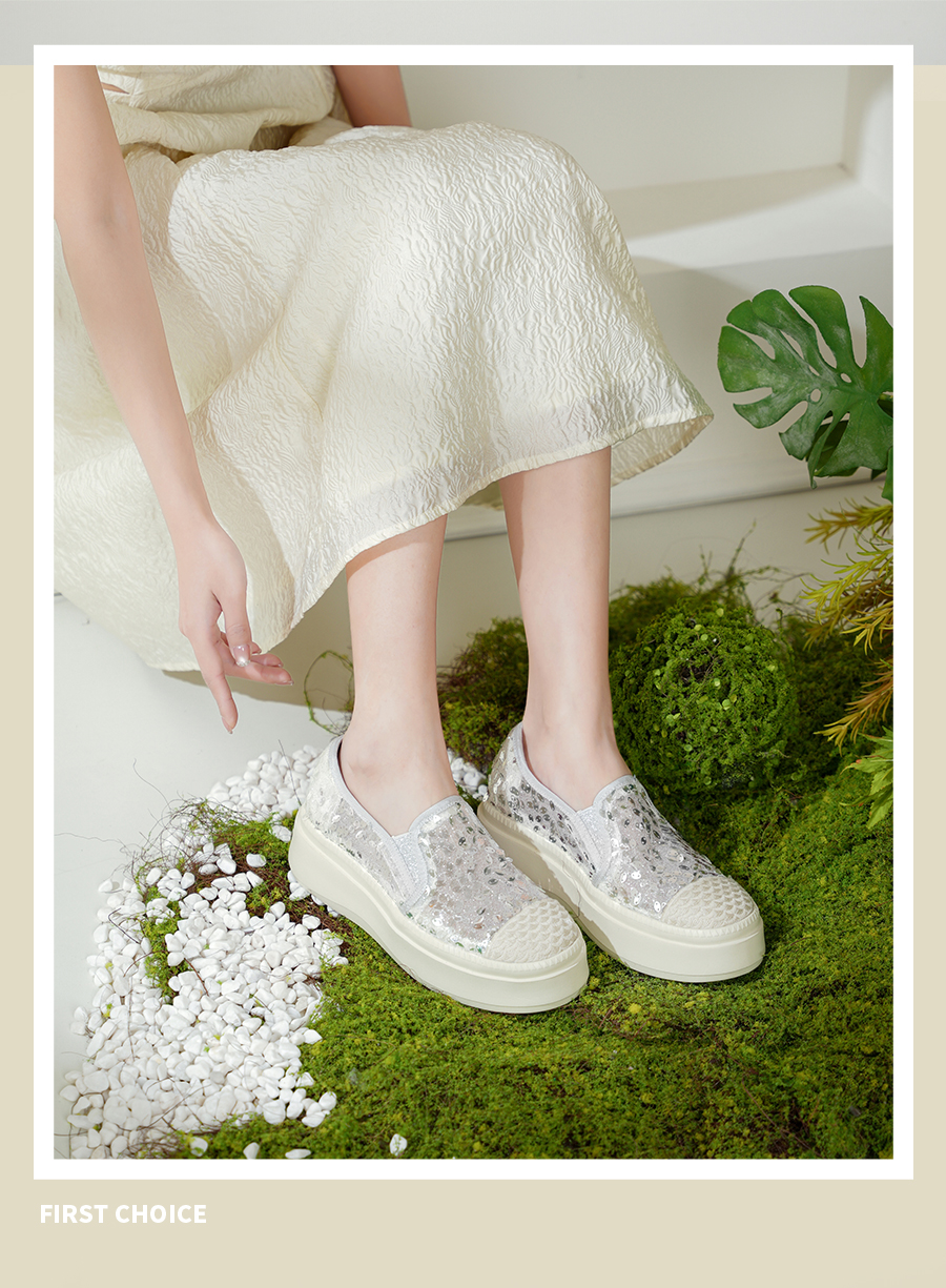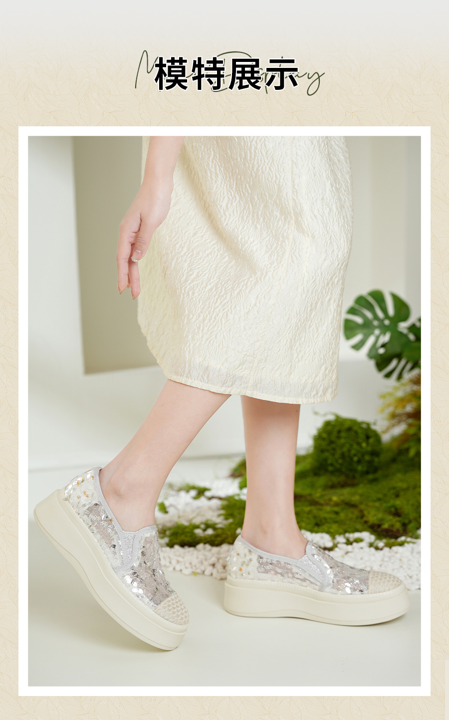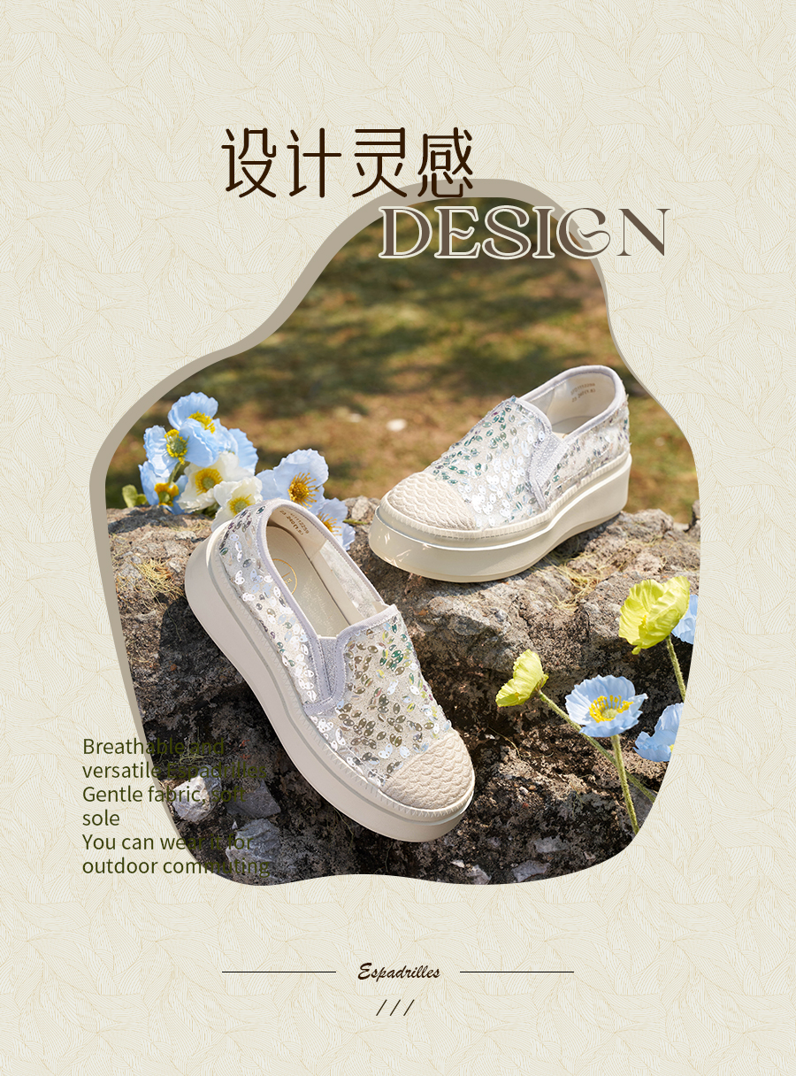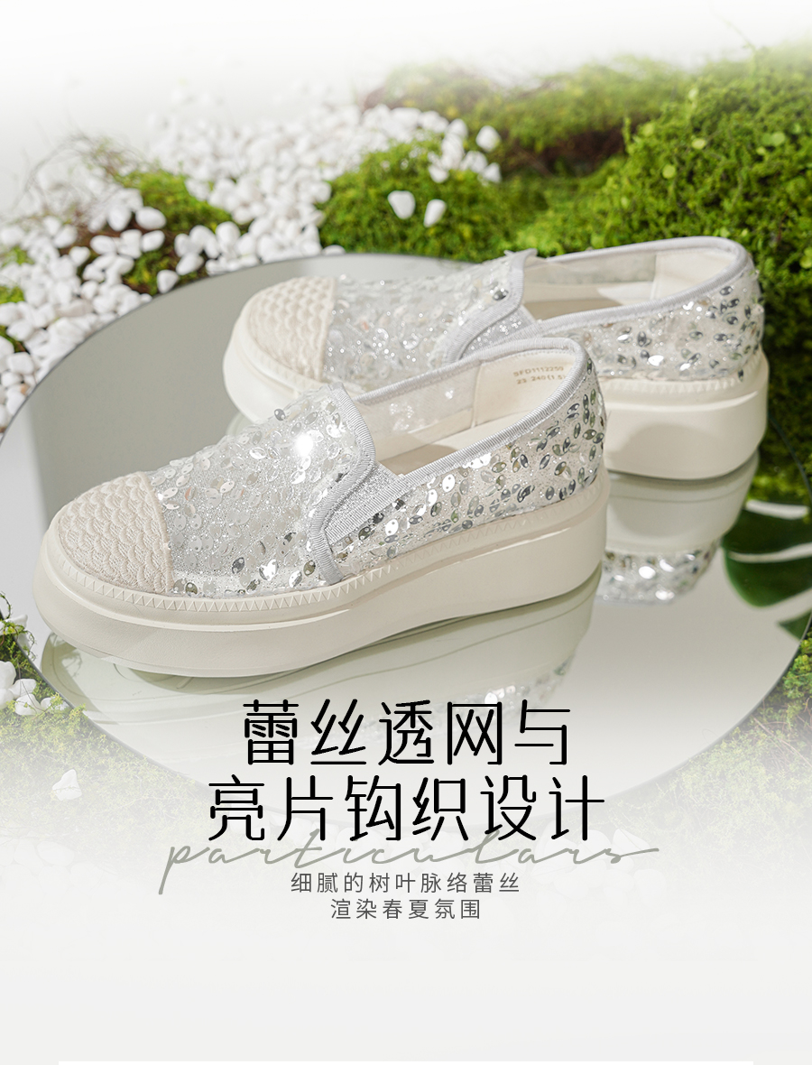 预售|Safiya/索菲娅2025春夏百搭懒人编织透气亮片蕾丝渔夫鞋 SFD1112259