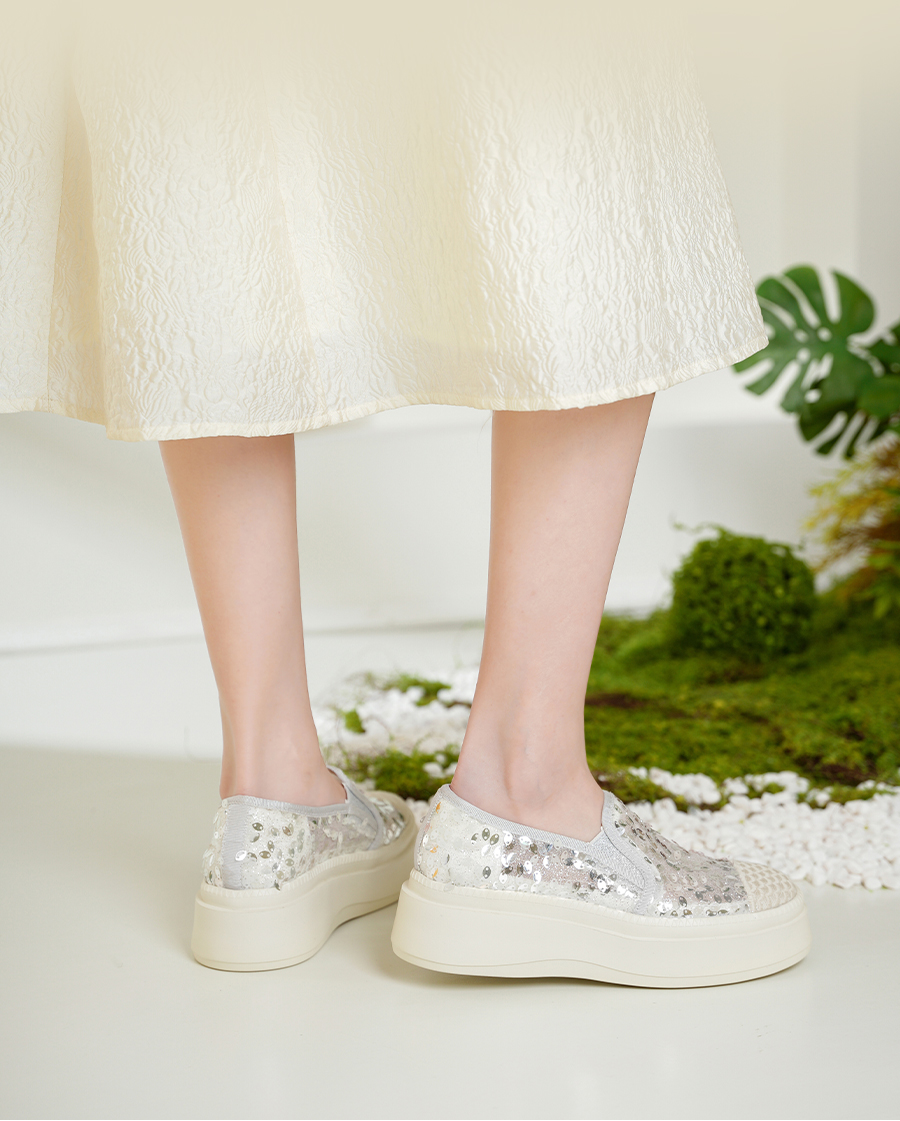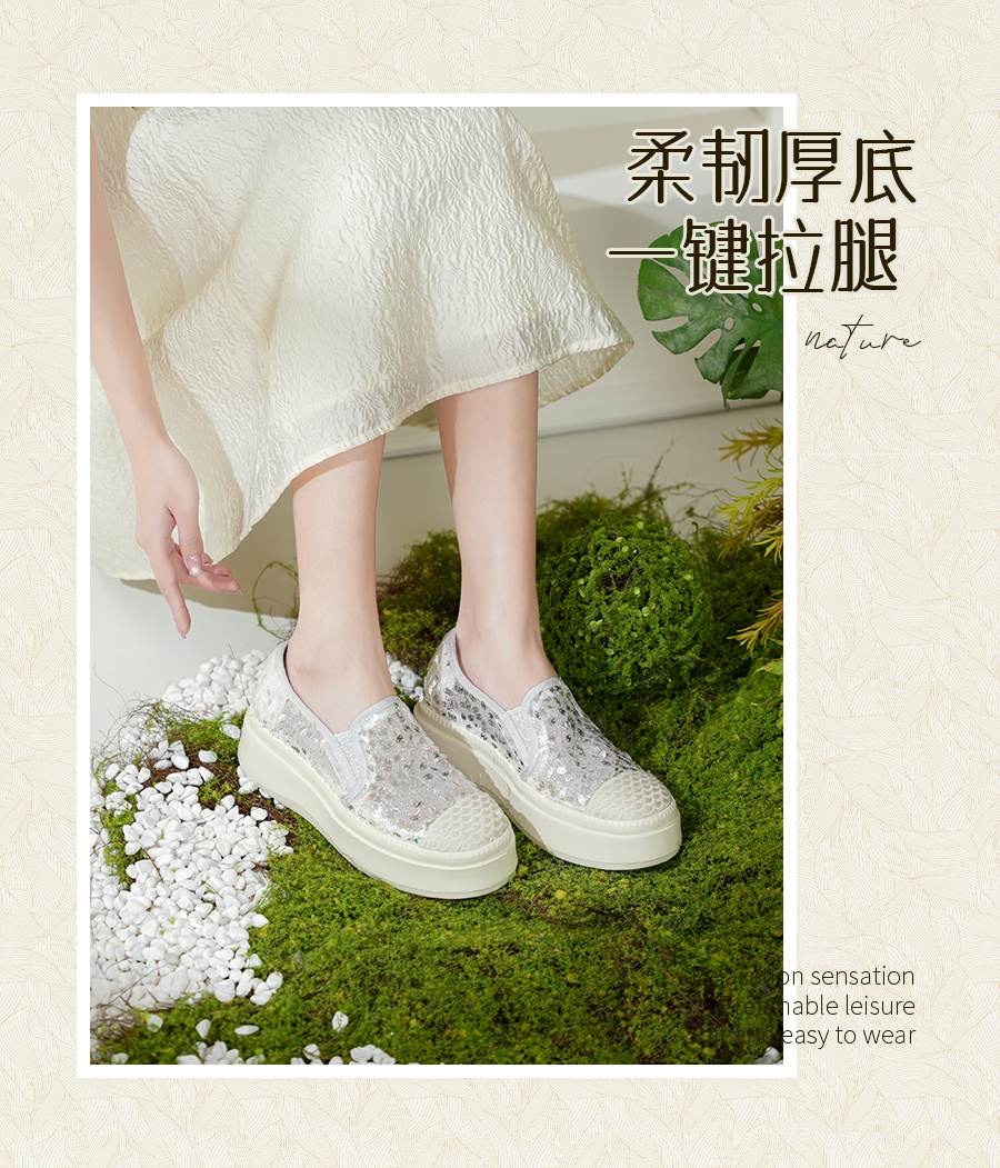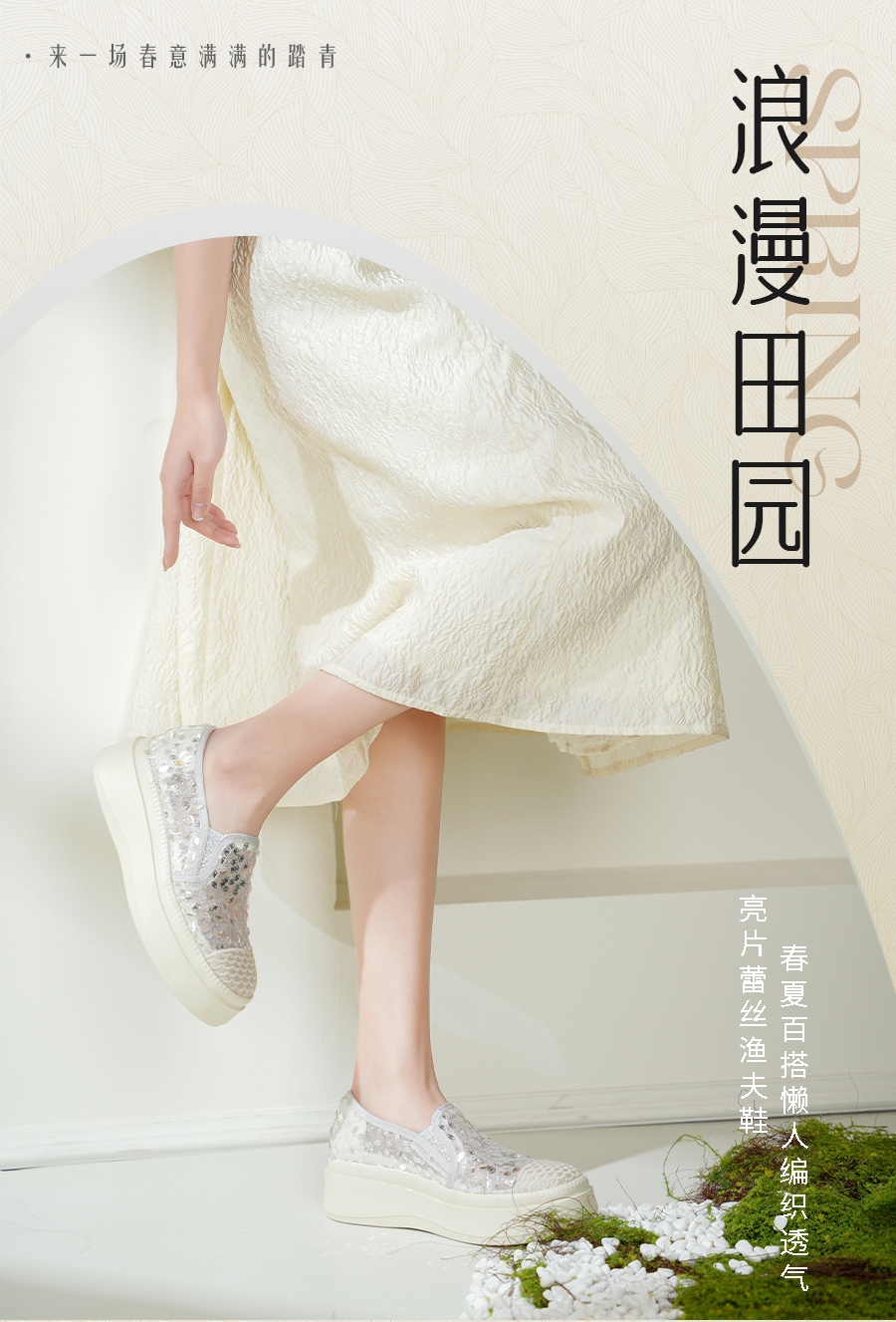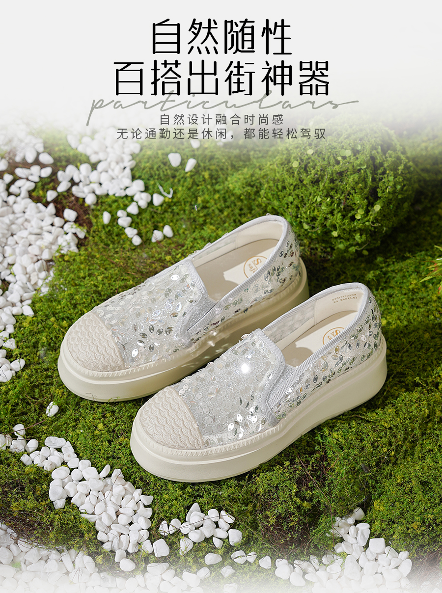 预售|Safiya/索菲娅2025春夏百搭懒人编织透气亮片蕾丝渔夫鞋 SFD1112259