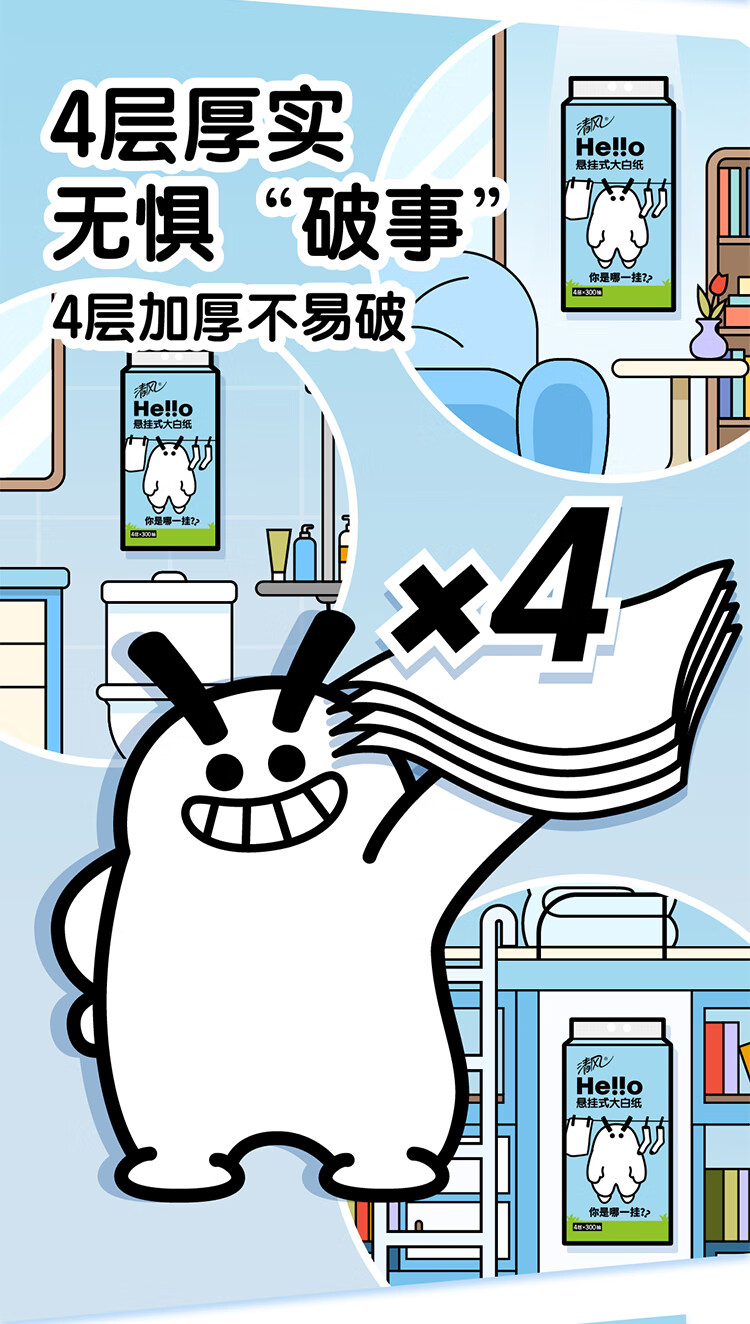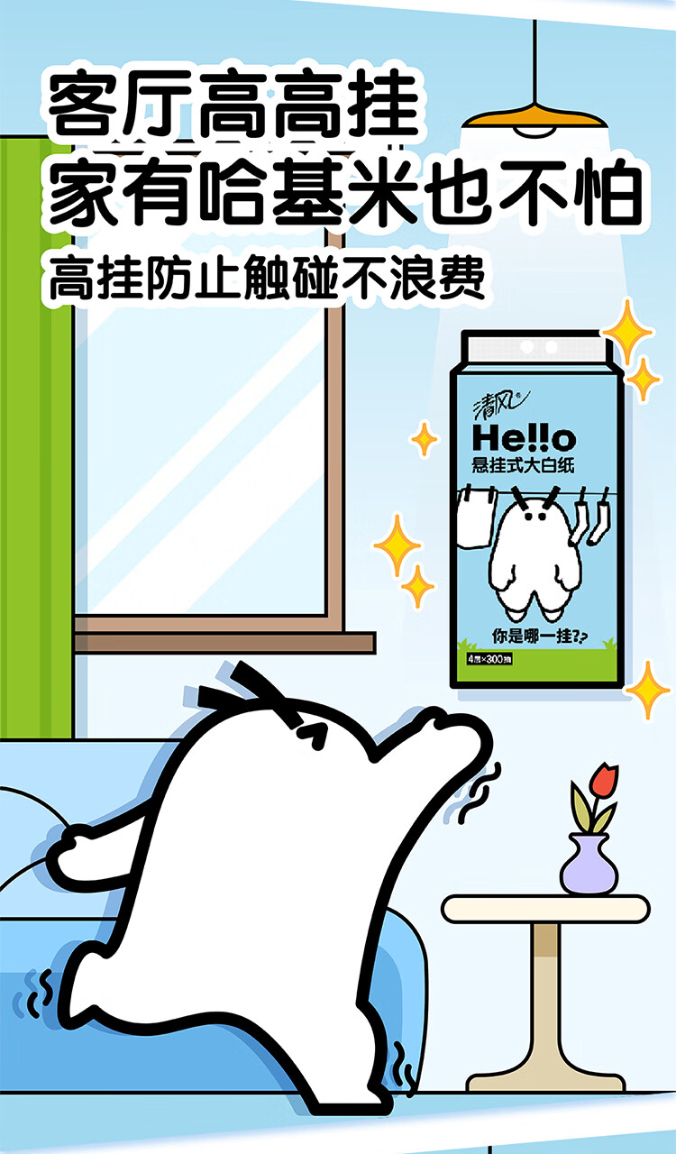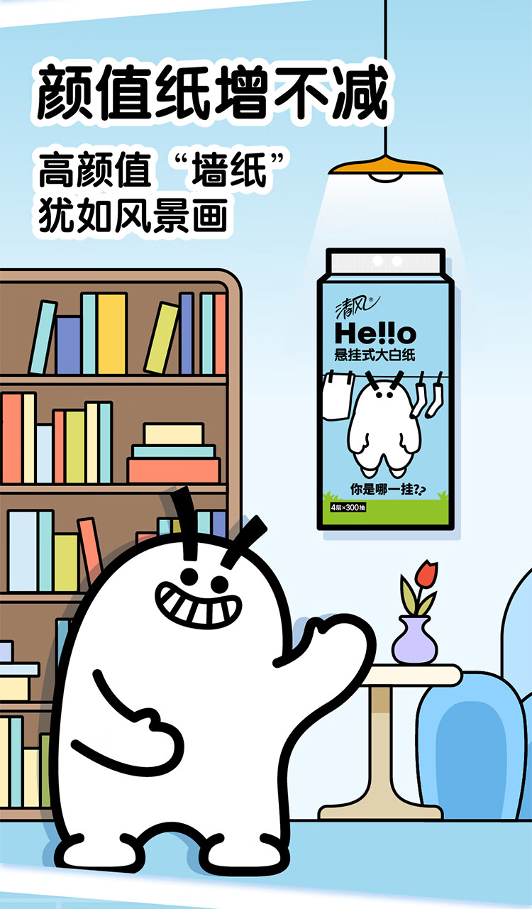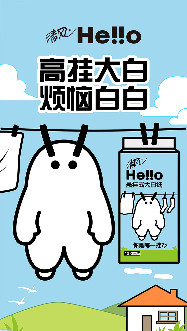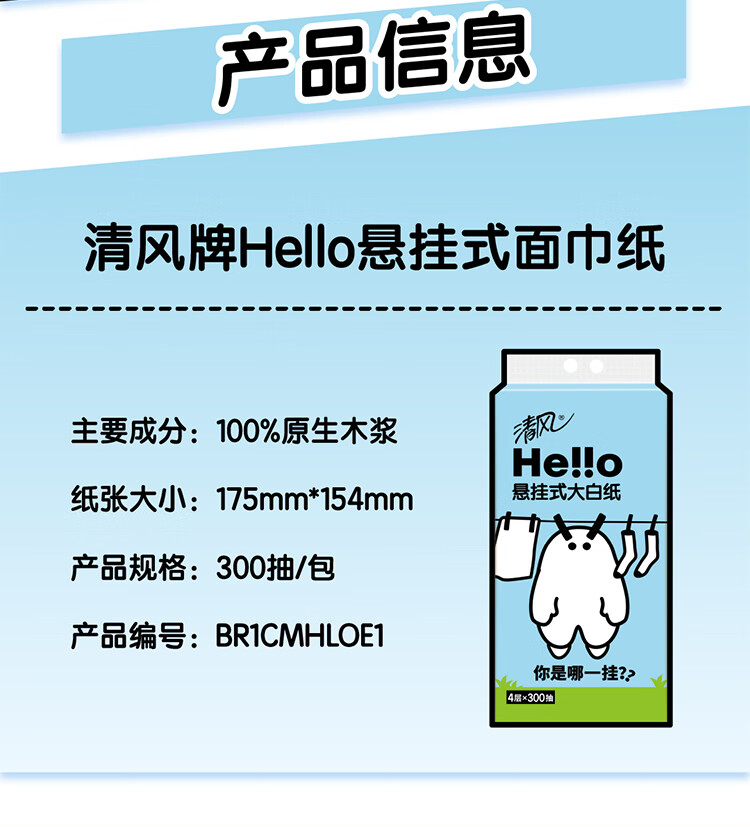 清风Hello4层300抽 挂抽式面巾纸*2提