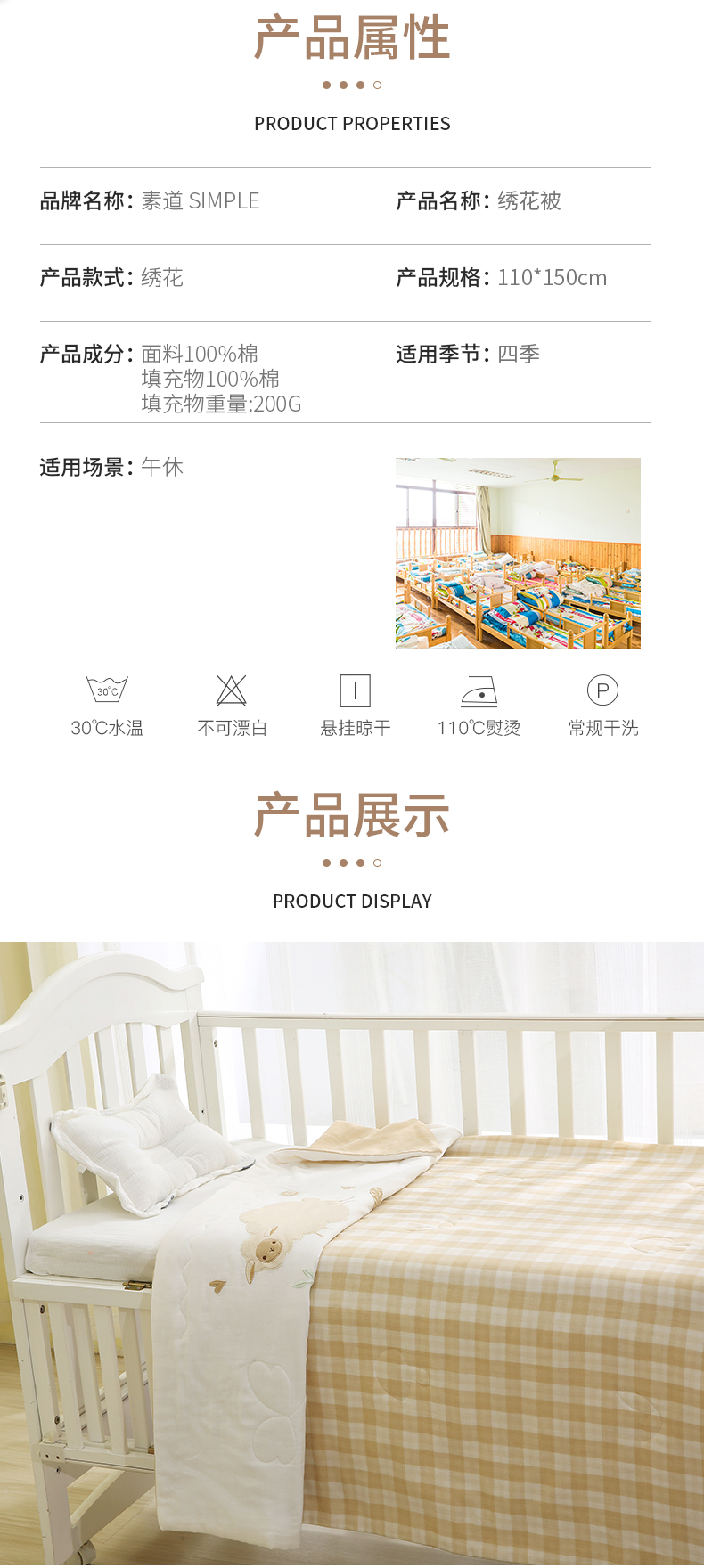 素道天然有机彩棉 儿童绣花被 幼儿园午休被 可爱纯棉被