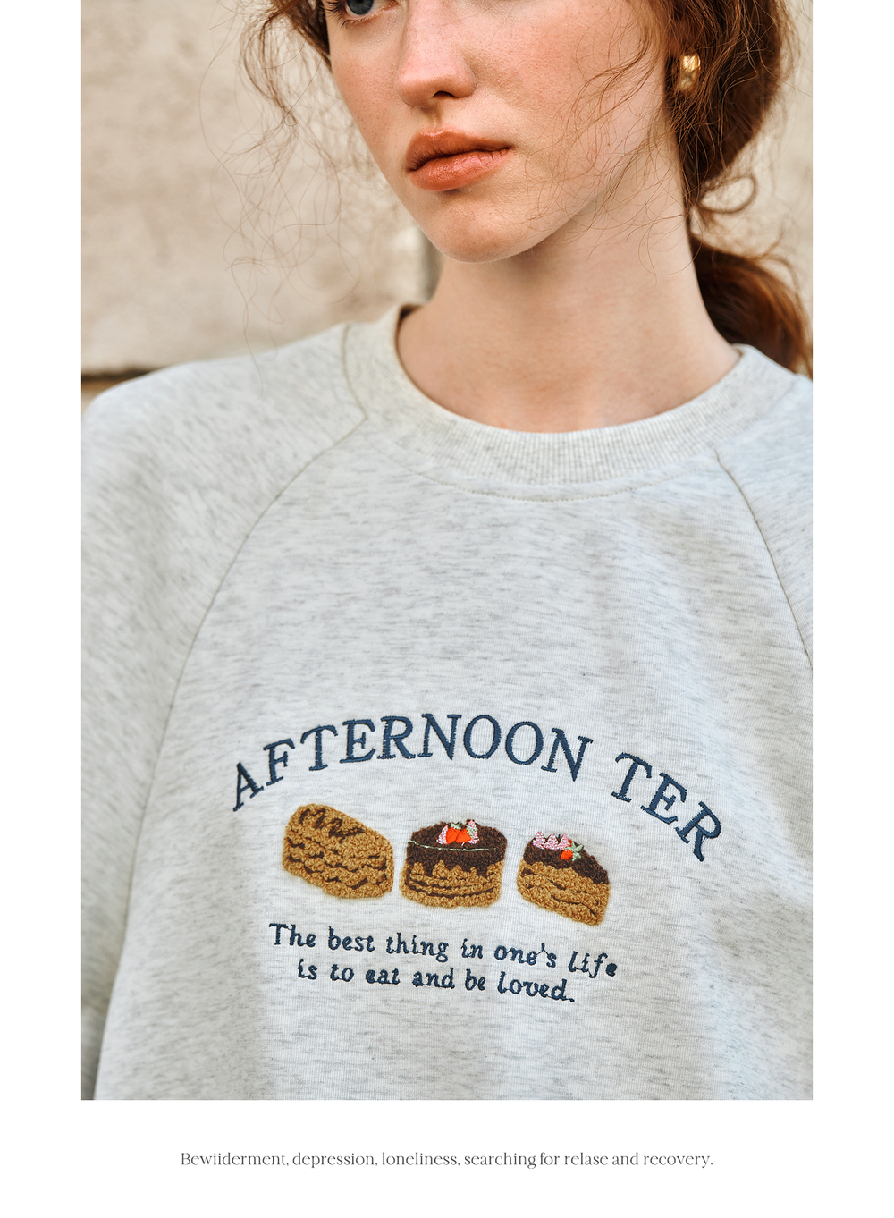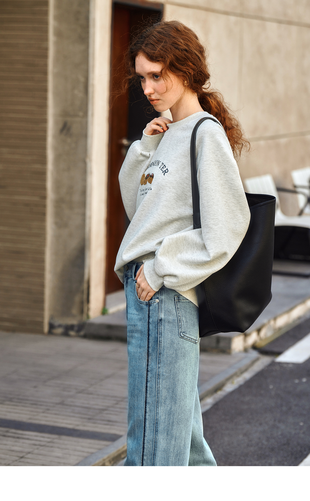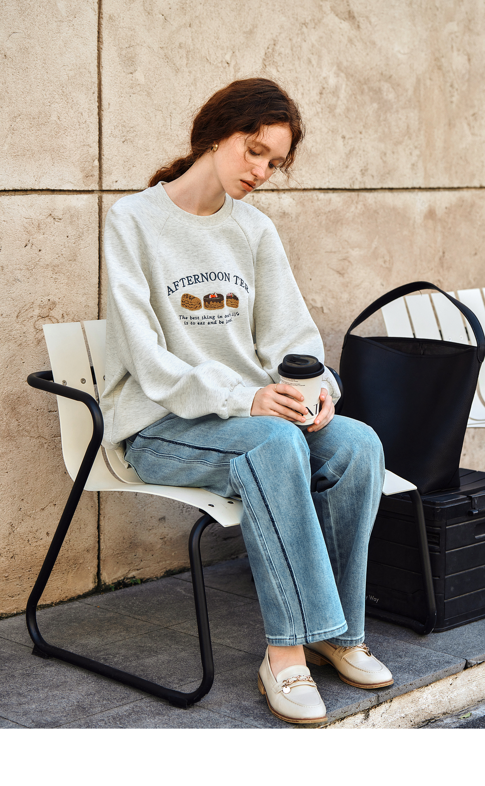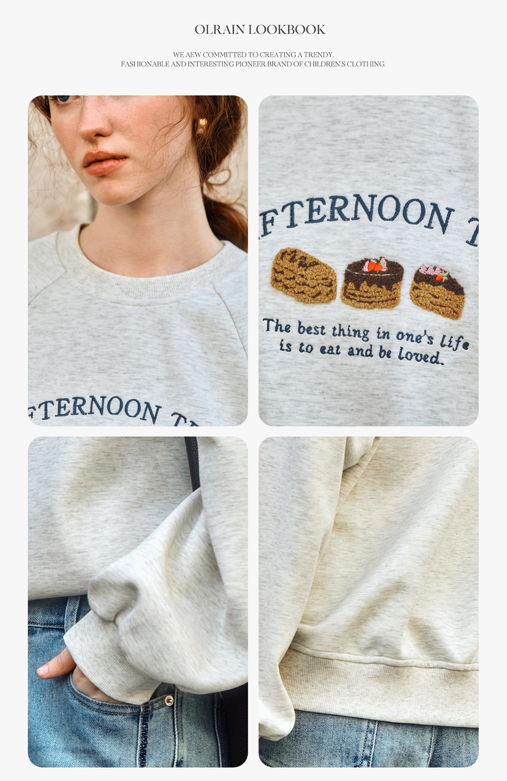 OLrain欧芮儿花灰色休闲卫衣女春季2025新款复古宽松圆领套头上衣