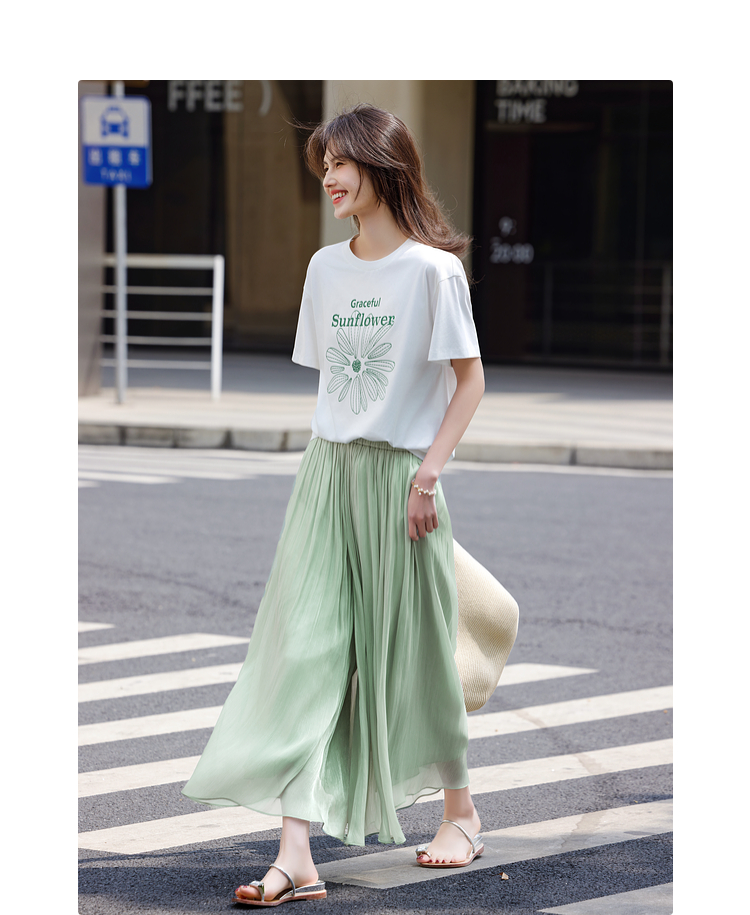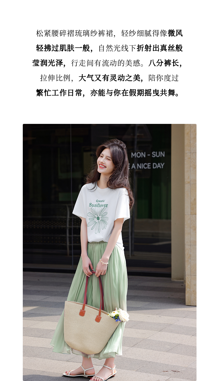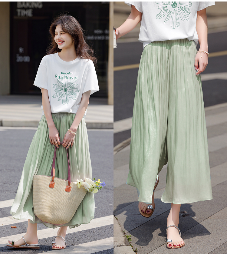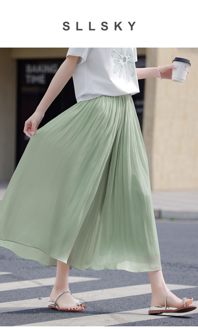 【专属特价】熙世界飘逸琉璃纱裙裤女夏季薄款2025新款光泽感八分休闲阔腿裤子