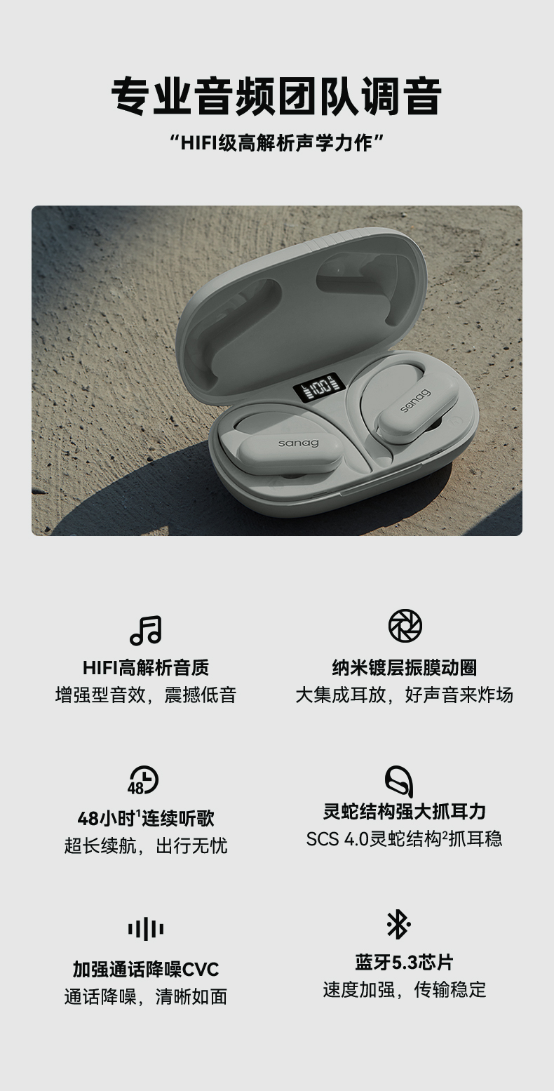 塞那 挂耳式蓝牙耳机 冰岛灰/对 Z22SPro-S