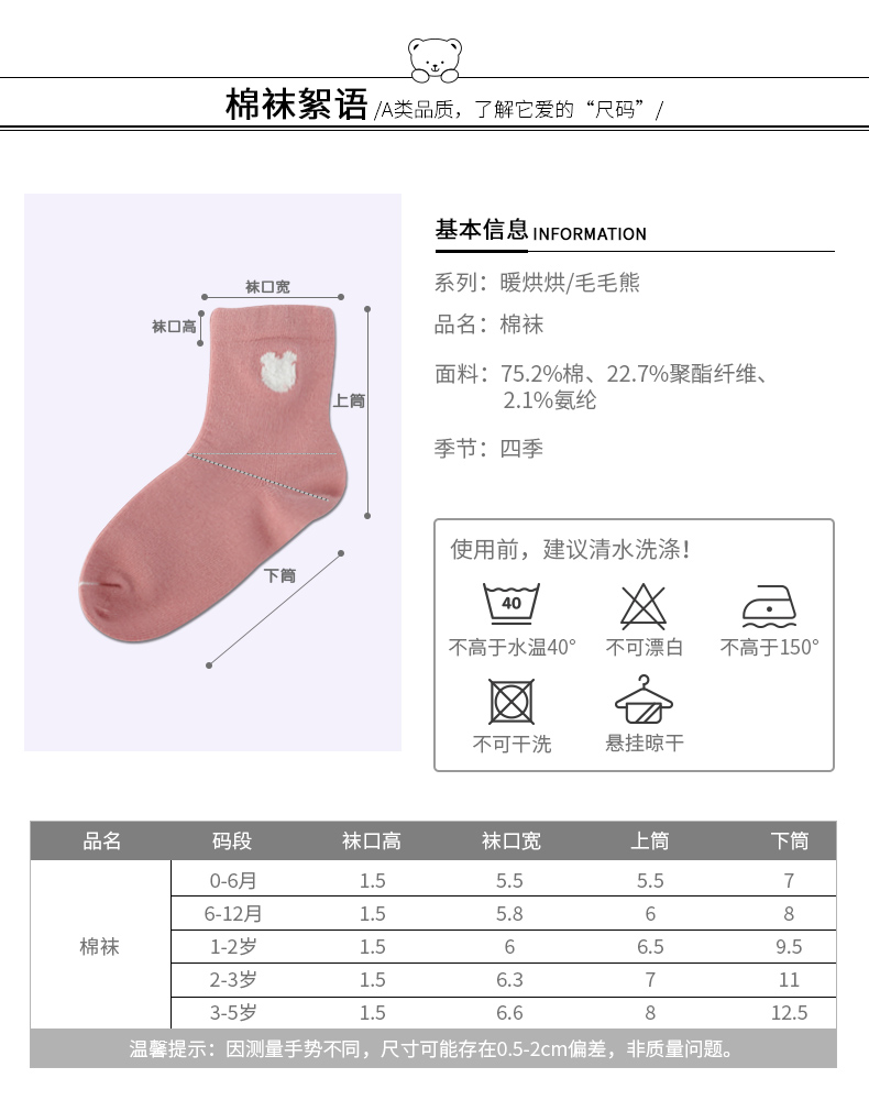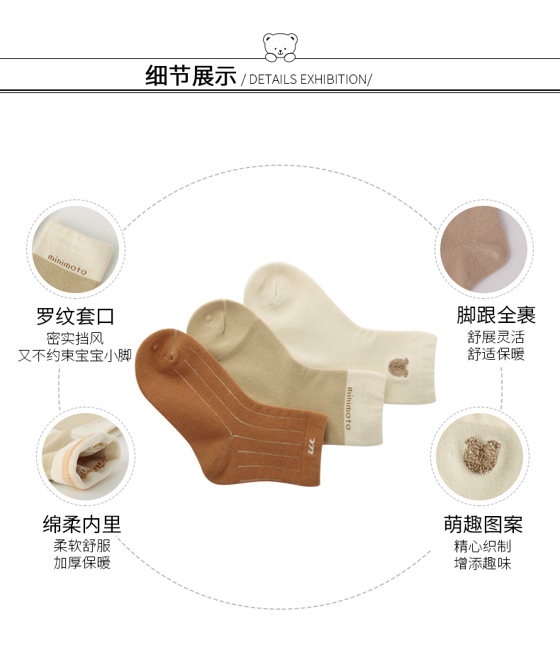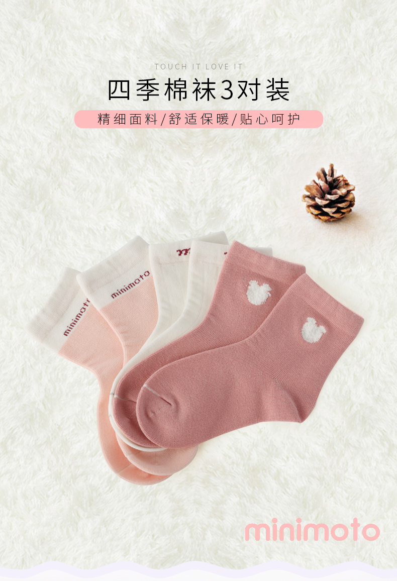 小米米配饰婴儿袜子四季纯棉儿童袜子保暖短筒宝宝棉袜男童女童四季袜3对装 YA057