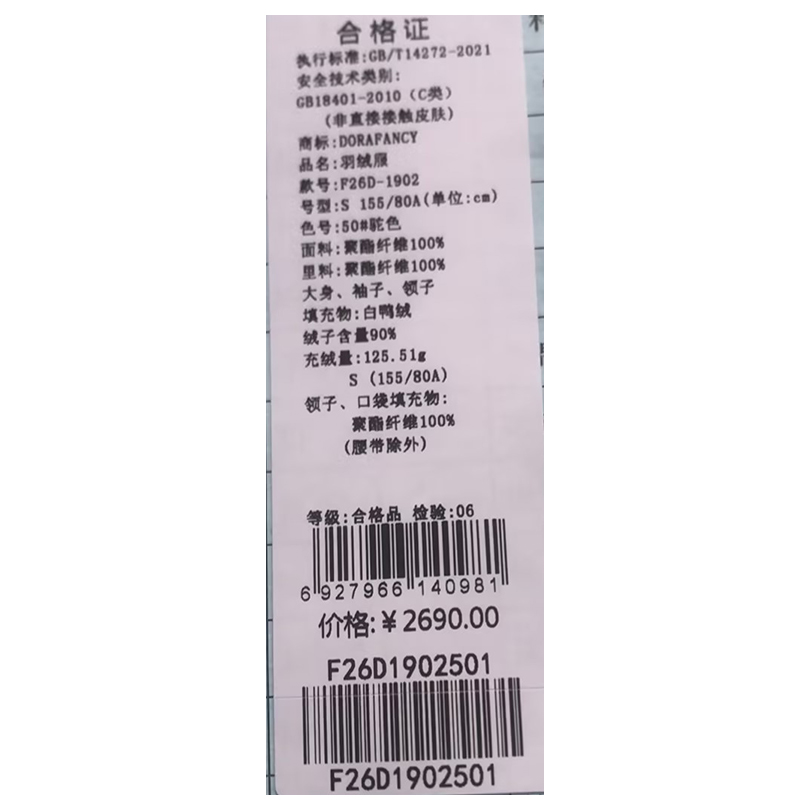 朵拉梵西羽绒服F26D1902