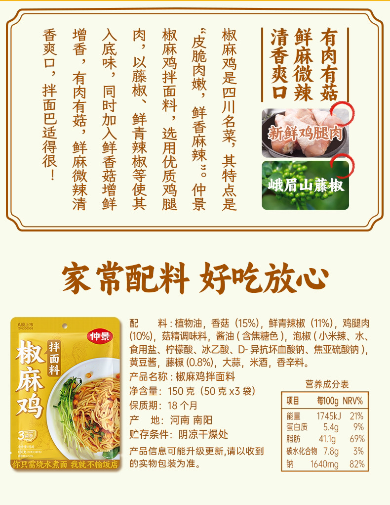 仲景椒麻鸡拌面料150克