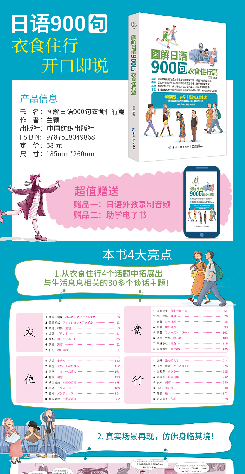 图解日语900句 衣食住行篇 兰颖 中国纺织出版社 日语日常交际 日语生活情景模拟 日语生活交际口语 零基础日语入门 日语学习教程