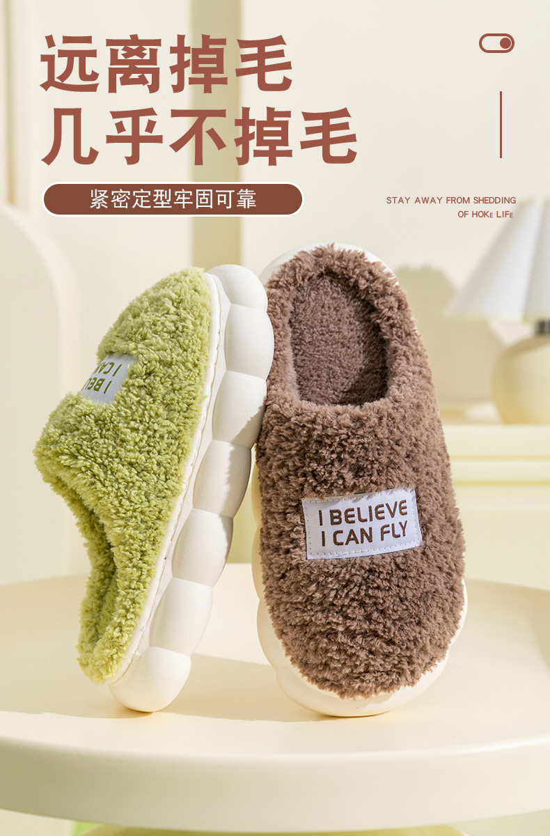「五色可选!厚底静音款」居家棉拖鞋女秋冬季家居家用厚底静音防滑保暖冬天情侣毛绒拖鞋男