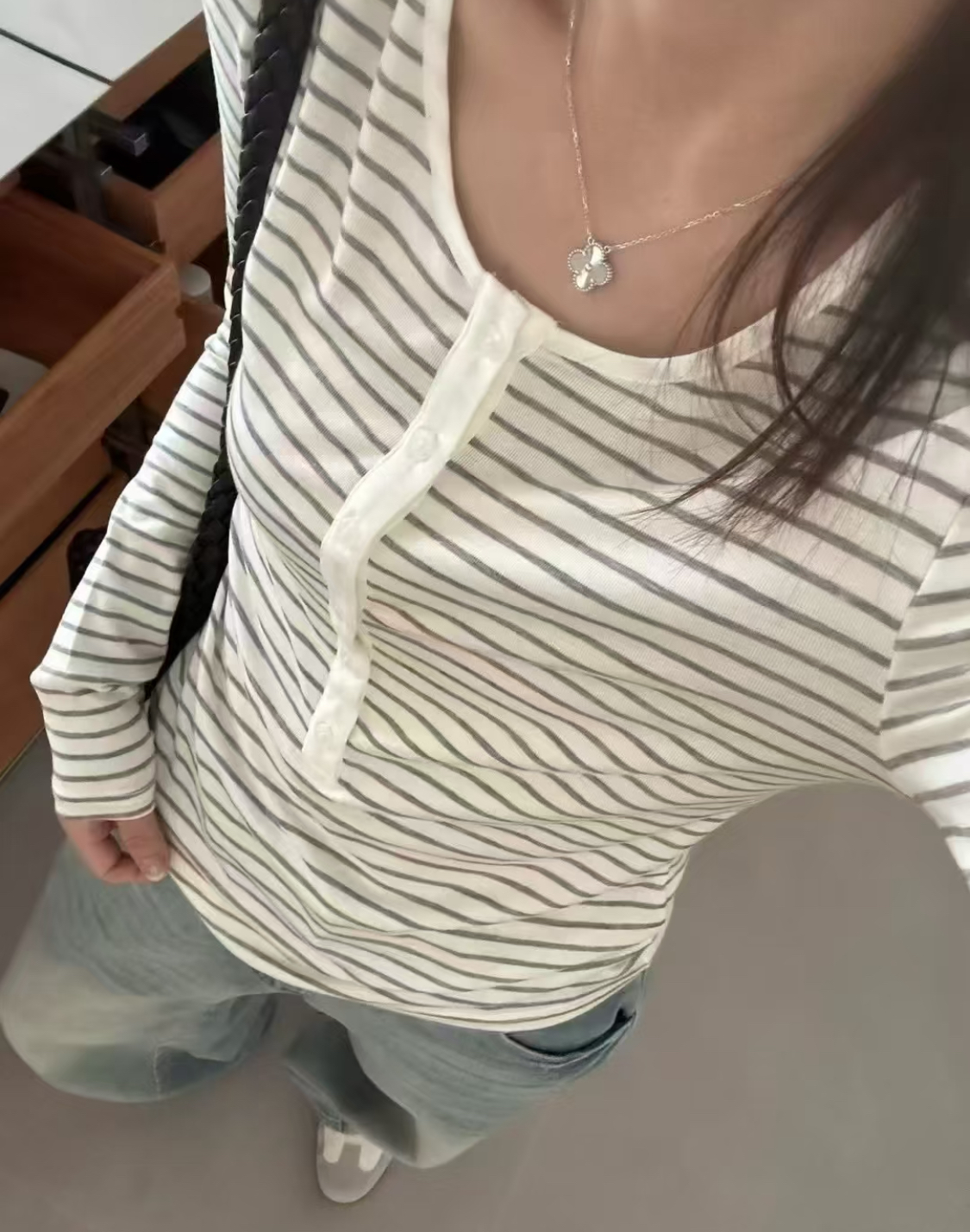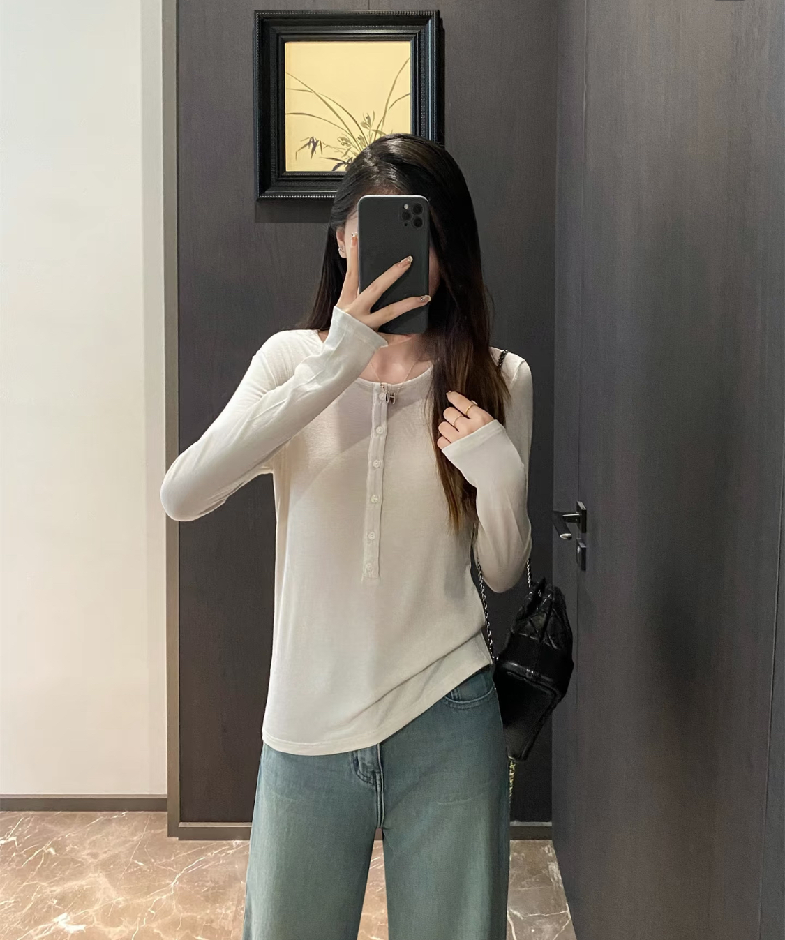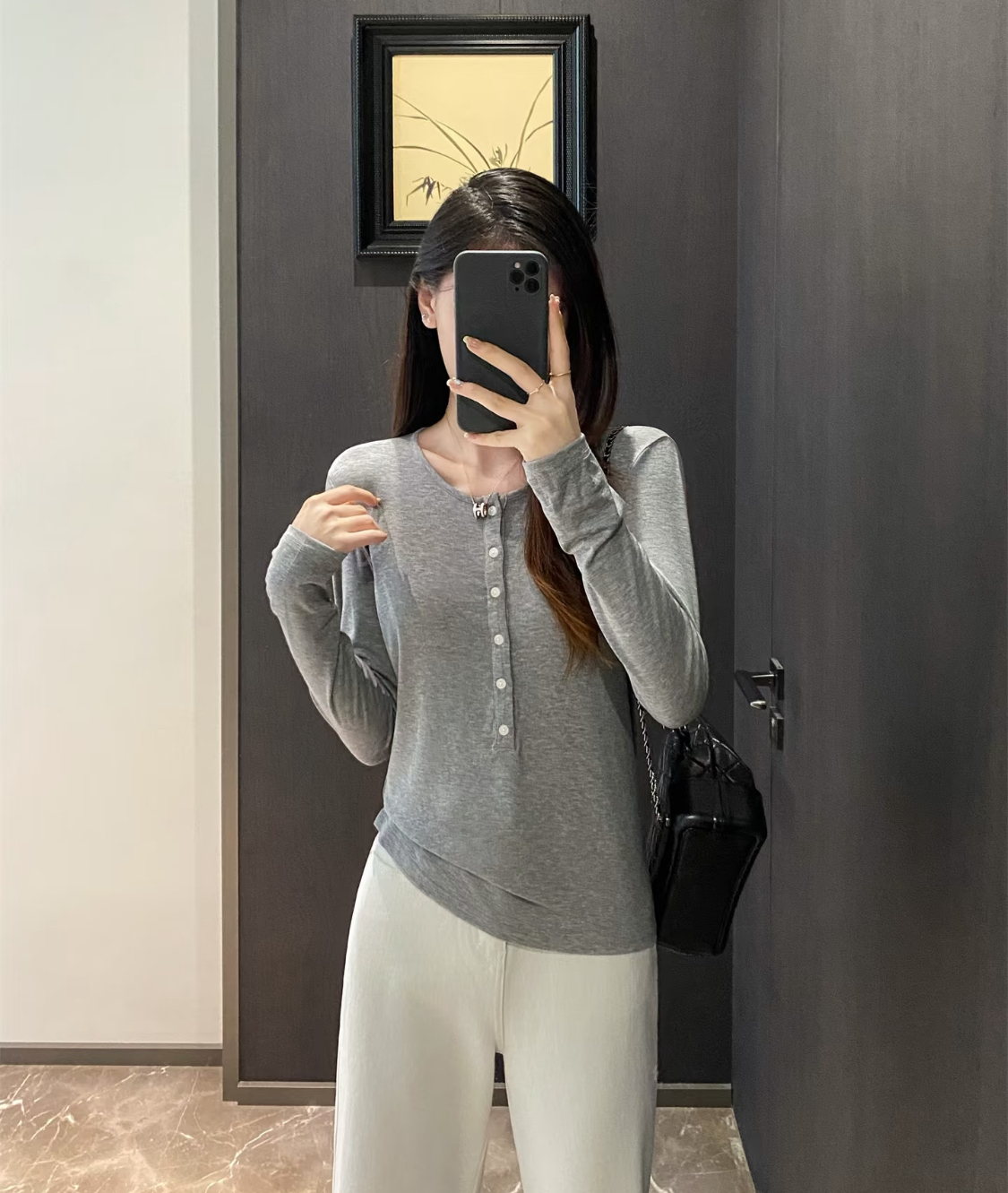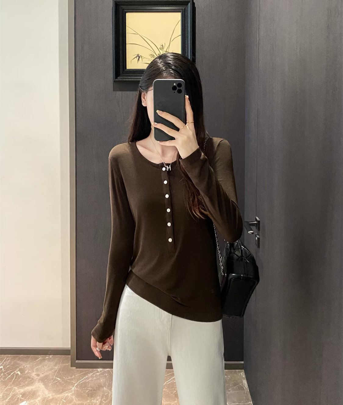 极简的风格,圆领+开襟设计,可以随意的解开几颗扣,修身的同时又显得随性慵懒,还显得脖颈线条更修长些,弹力大,不紧绷,恰到好处地勾勒身材曲线,还能藏住小肉肉,梨形、苹果型都适配!无论单穿还是叠搭,秋冬氛围感满满~!