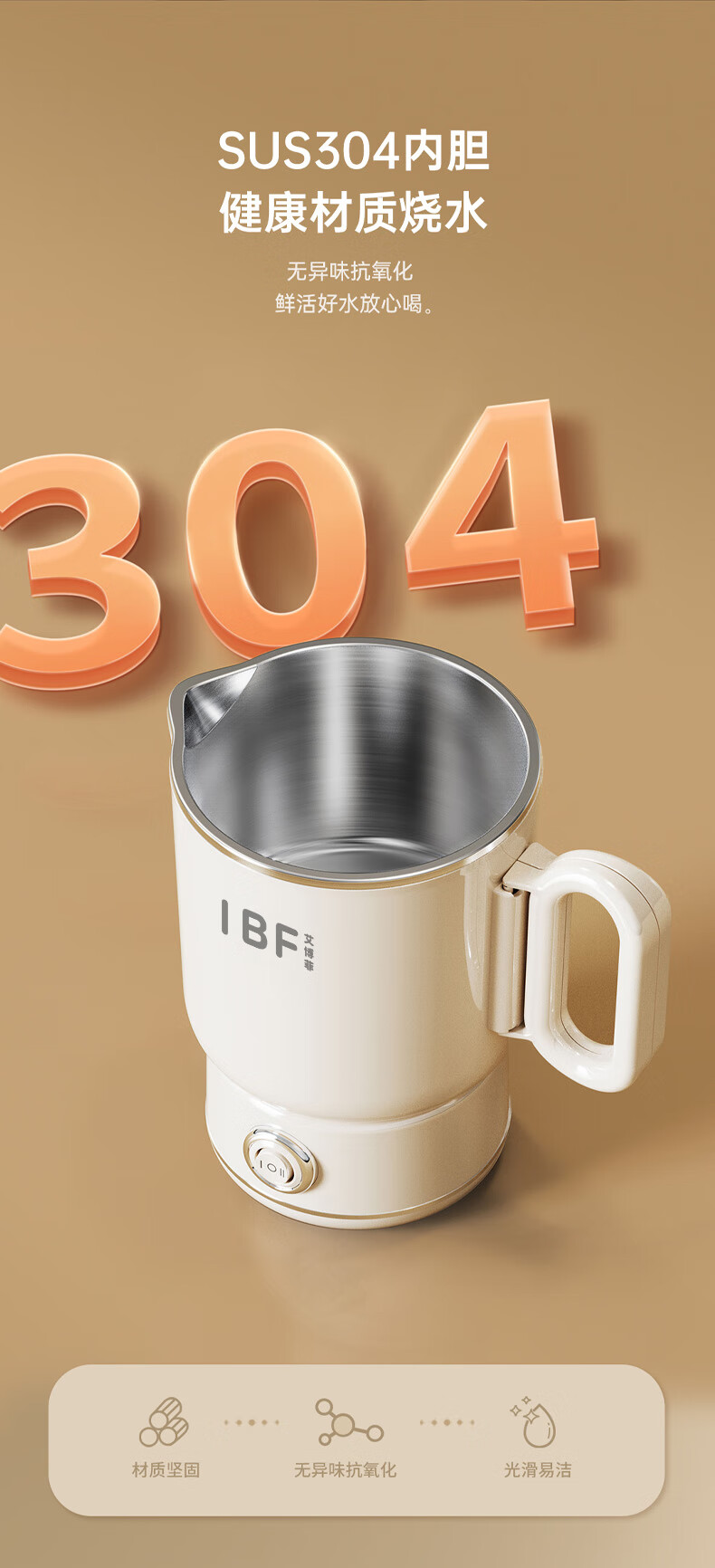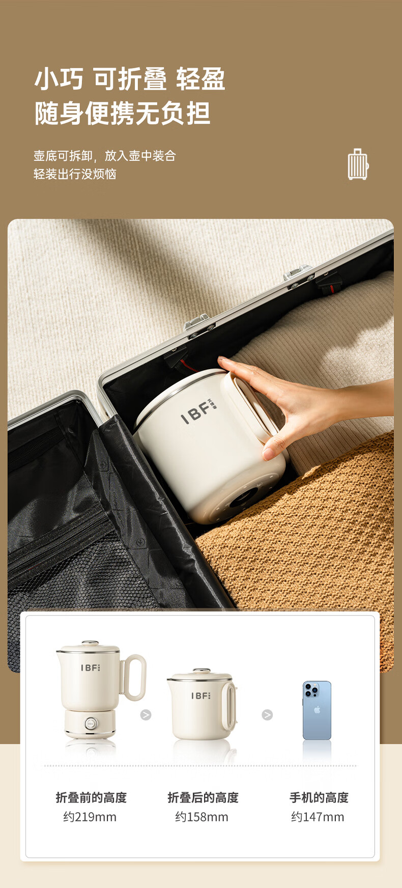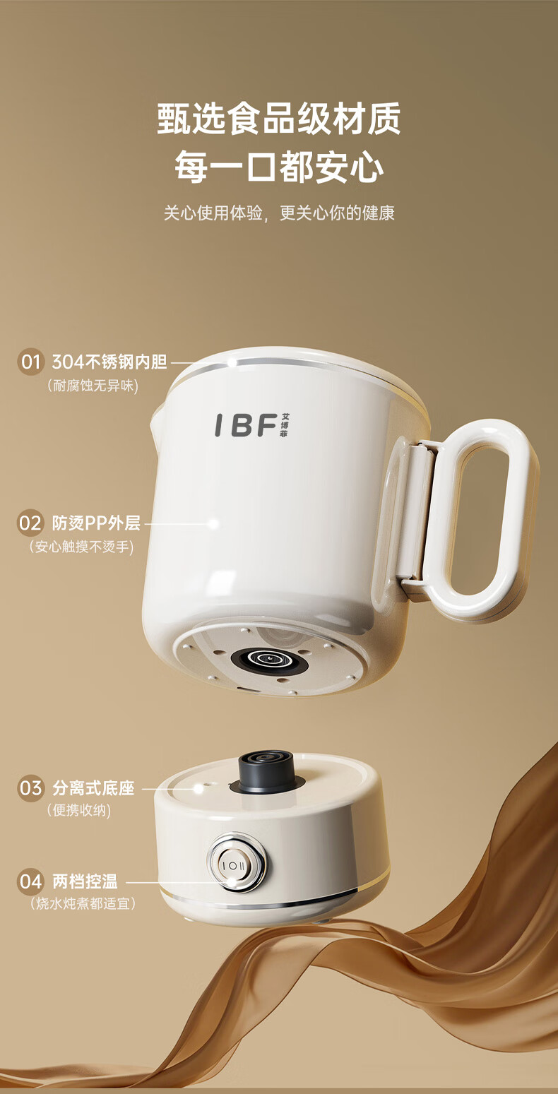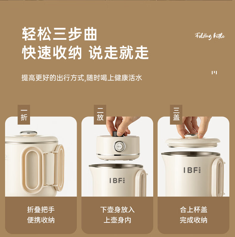 【IBF艾博菲】折叠304电水壶IBD-091【粤湾】