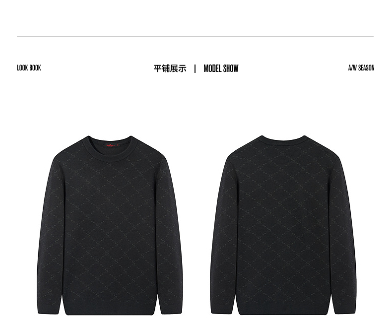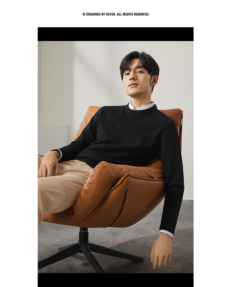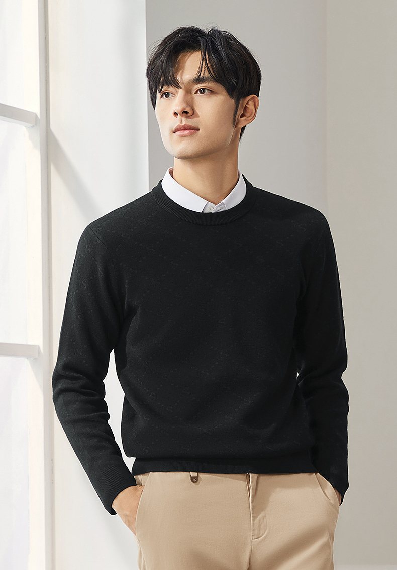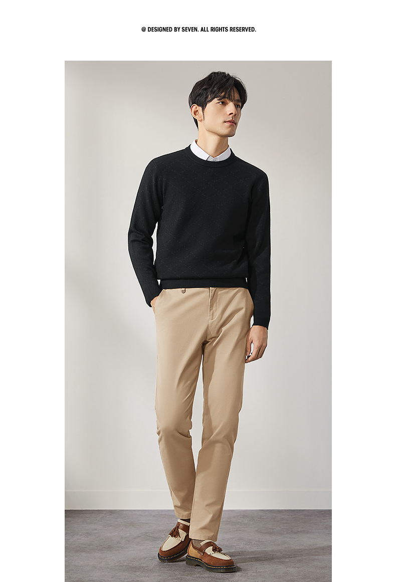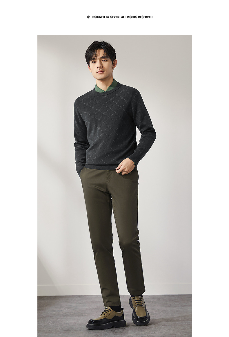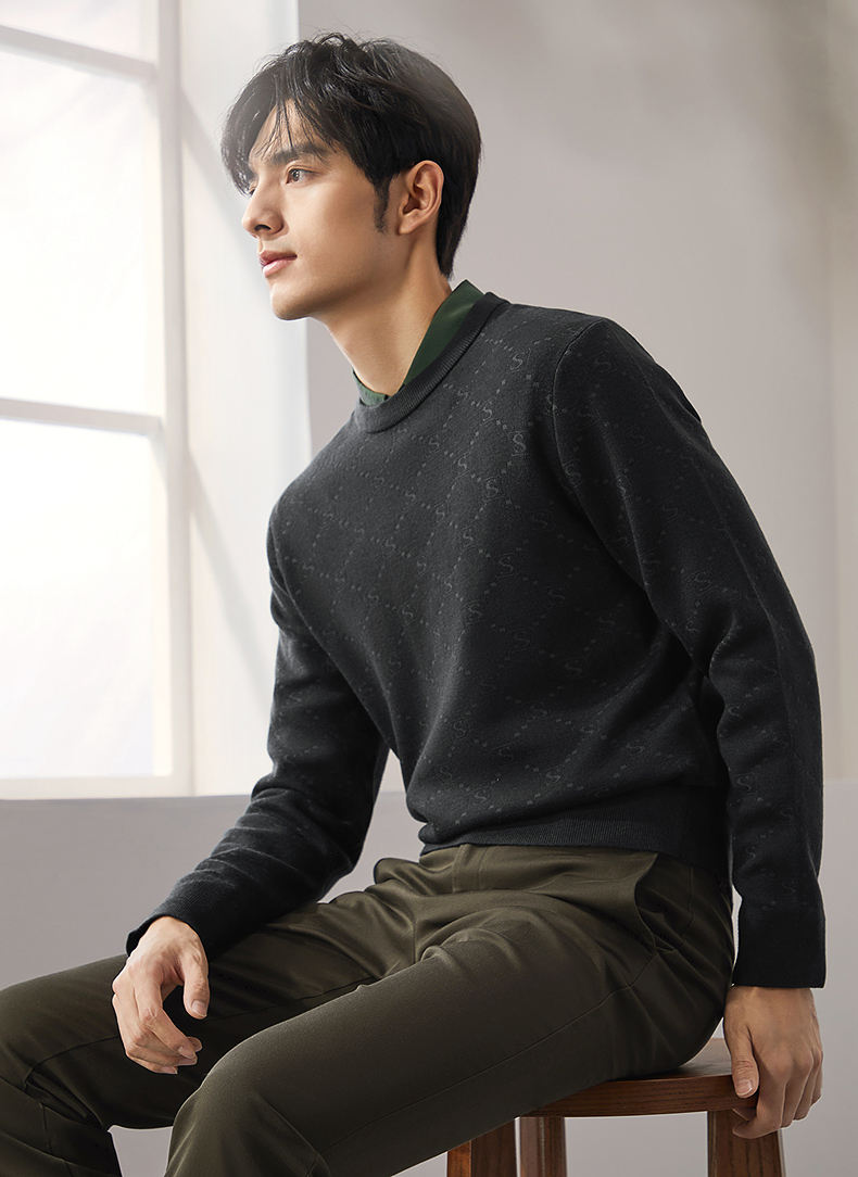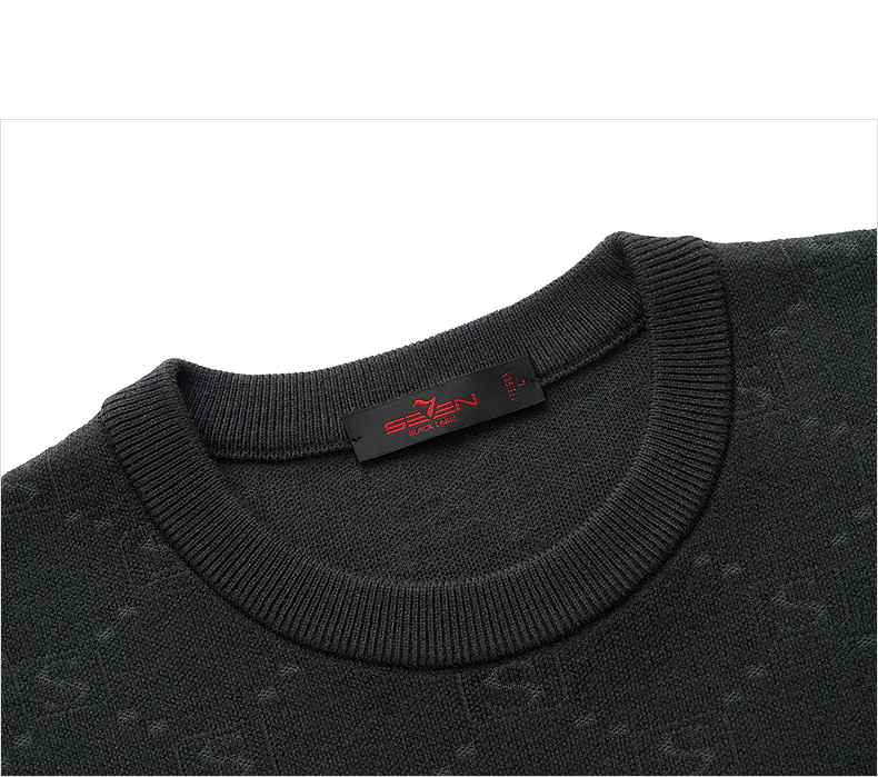 【抗静电】柒牌可机洗毛衣男秋冬新品时尚字母提花含羊毛圆领毛衫 127Y70390