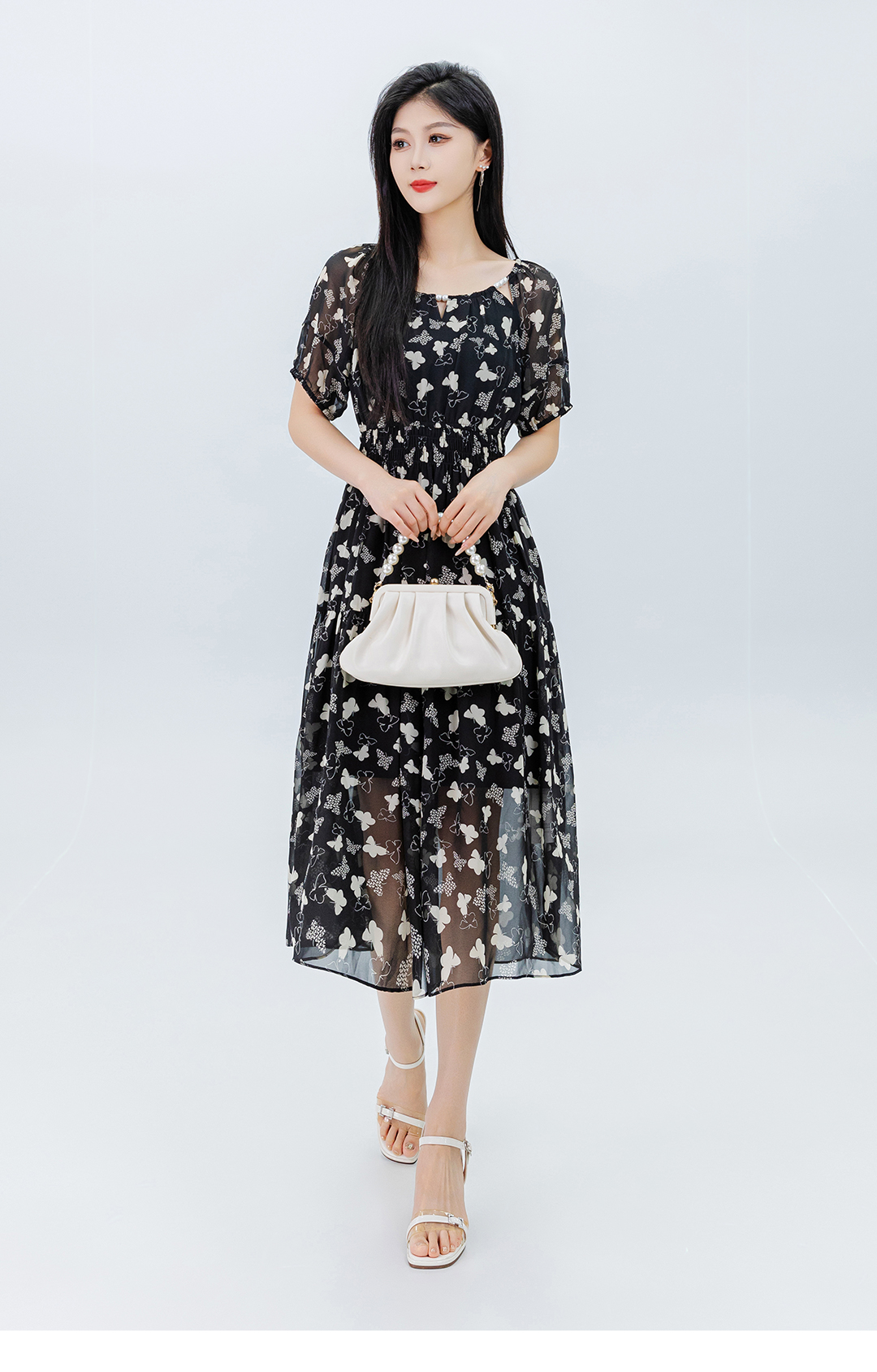 夏上新时尚蝴蝶印花修身气质连衣裙4242127 商品图3