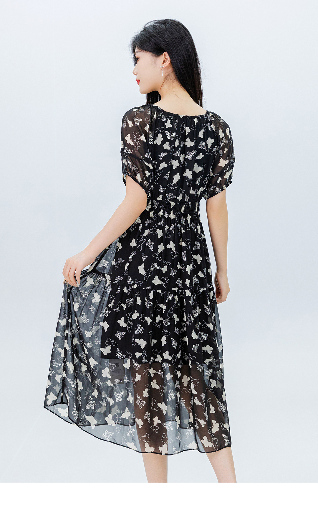 夏上新时尚蝴蝶印花修身气质连衣裙4242127 商品图4