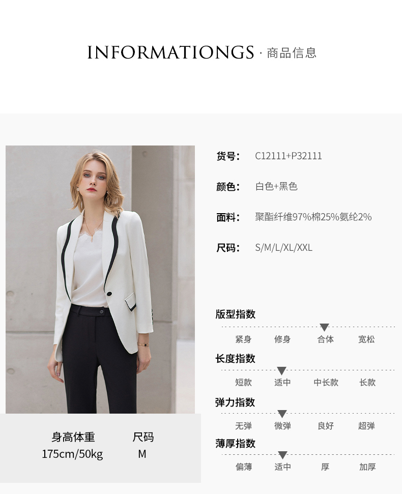 IWY/黑白撞色工作服女套装高端公务员面试职业装气质女神范西装正装OL C12111+P31355