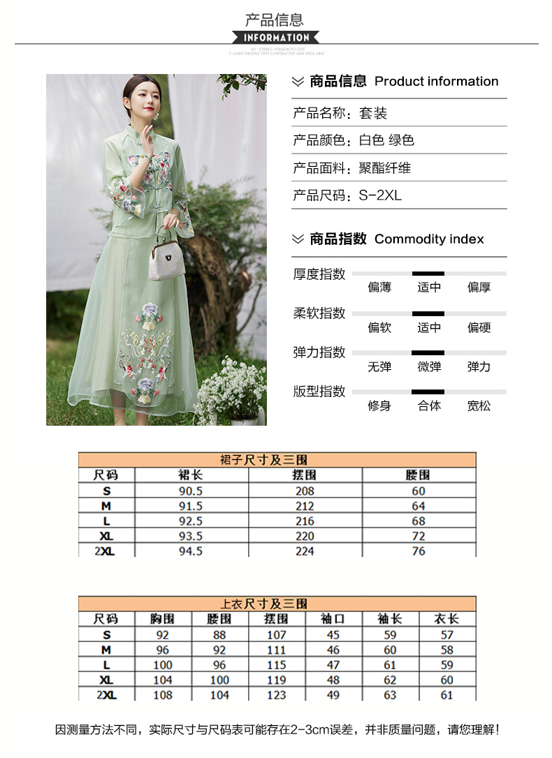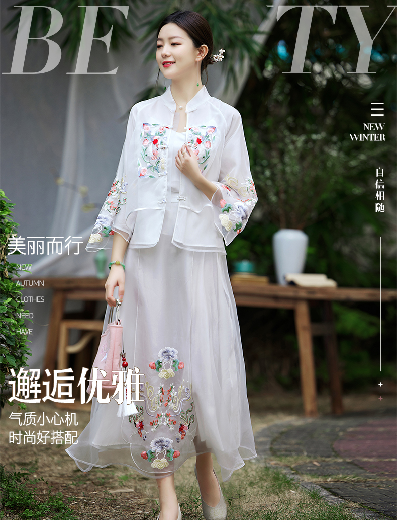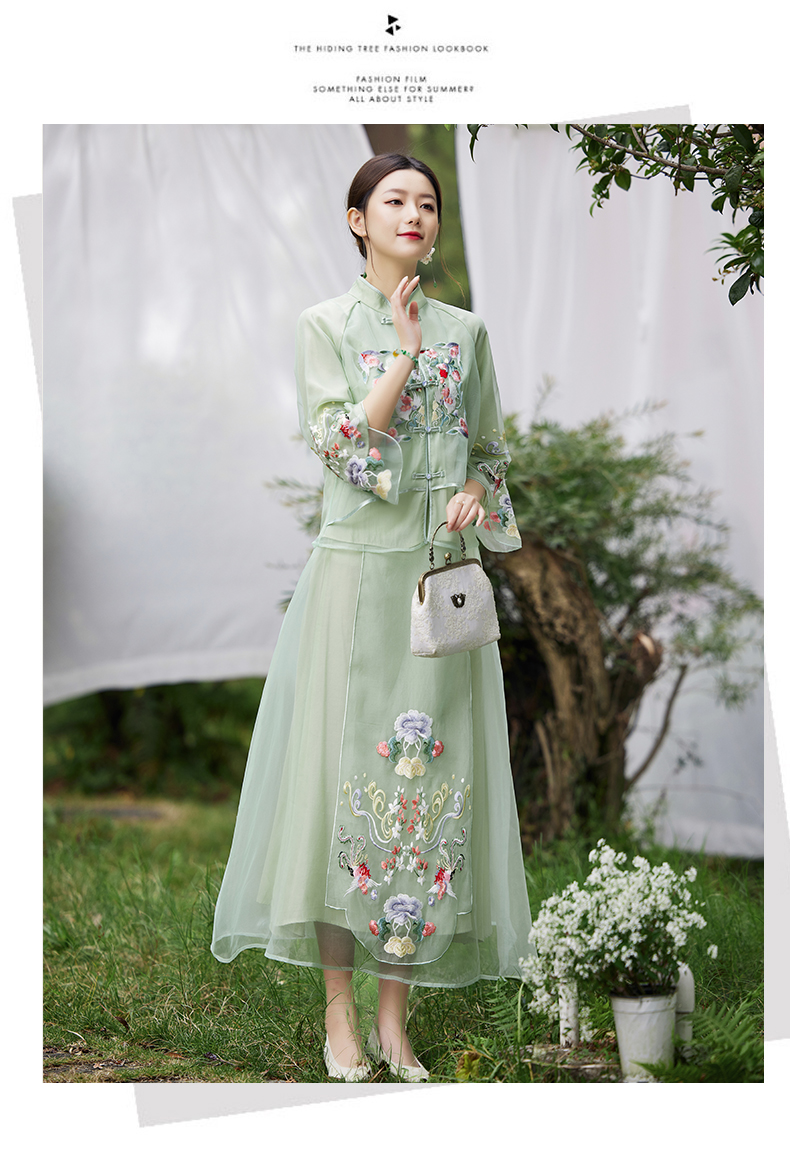 2022新款清新淡雅中国风刺绣女装时尚两件套套装QZ21953