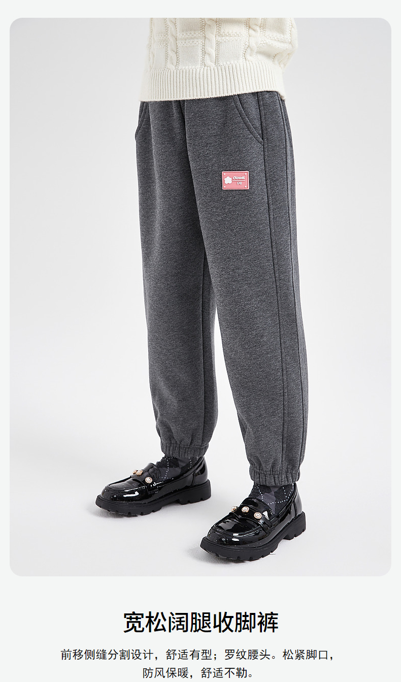 笛莎Deesha 女童裤子2023冬季新款女童宽松阔腿收脚休闲裤