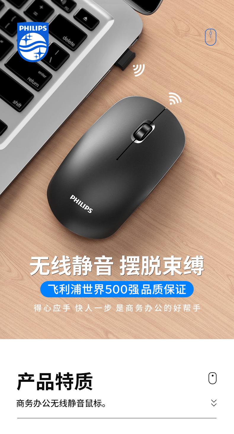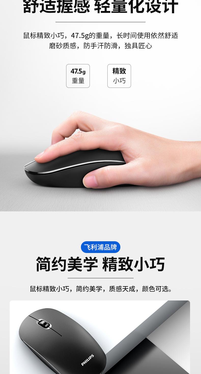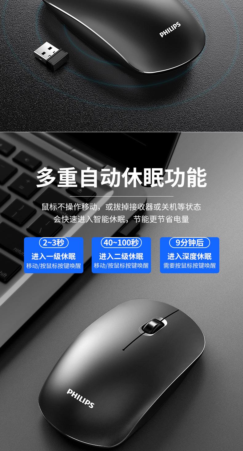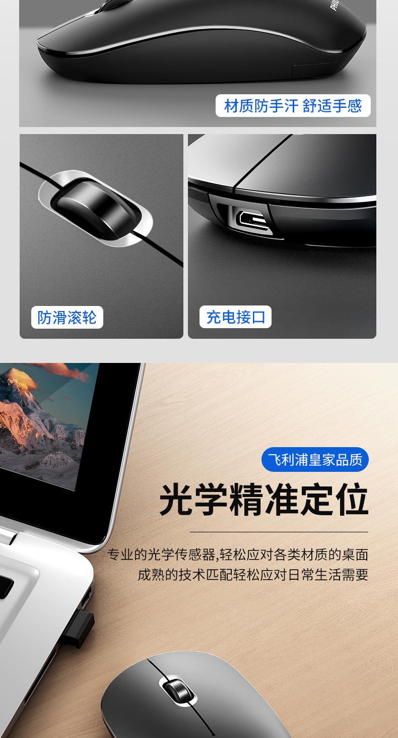 飞利浦7315 无线2.4鼠标可充电台式机笔记本电脑办公商务无线鼠标