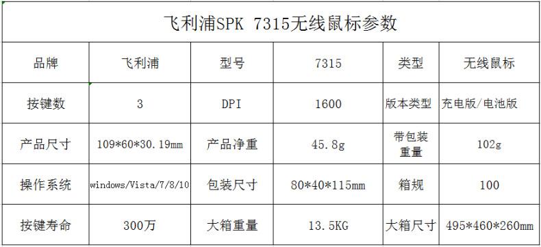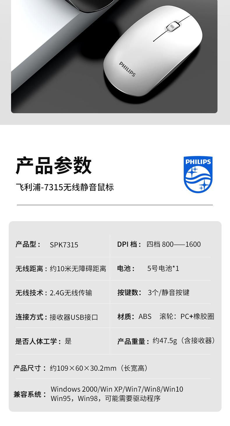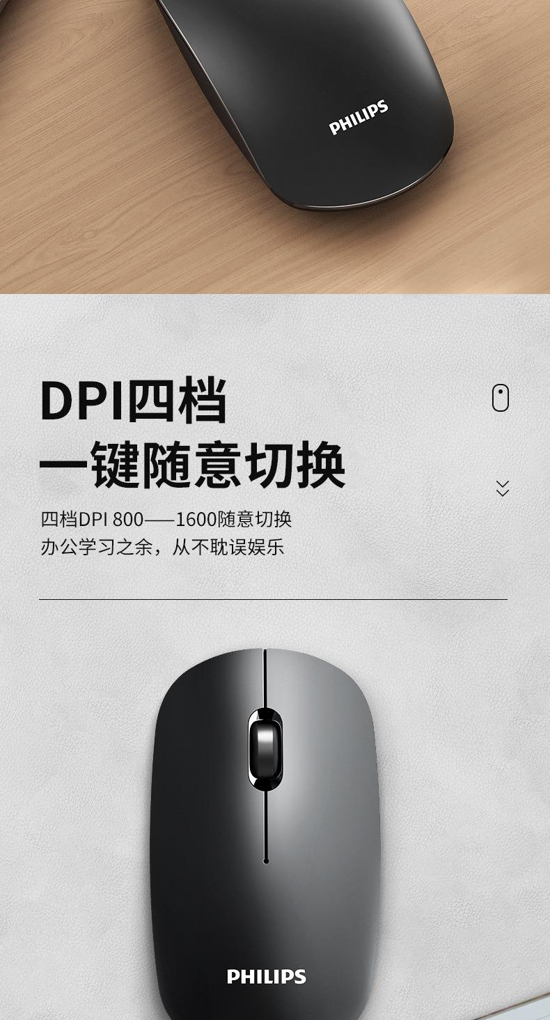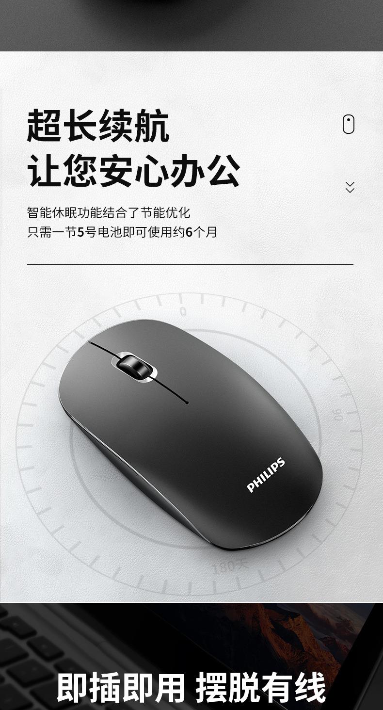 飞利浦7315 无线2.4鼠标可充电台式机笔记本电脑办公商务无线鼠标