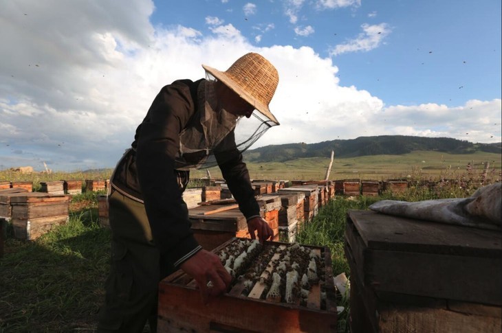 这里有大蓟、西域党参、薰衣草、三叶草、牛至、百里香、突厥益母草、疆贝母、薄荷、甘草、沙棘、柳兰、一枝黄等近二百余种的蜜源植物。